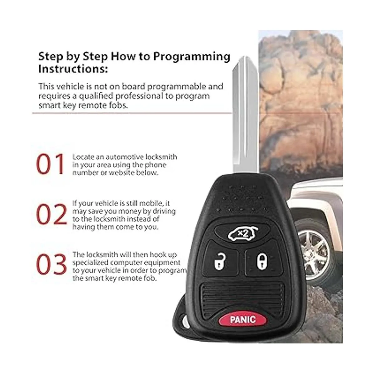 Programación: si tienes 2 llaves originales que funcionan, podrás programar estas llaves remotas desde casa con instrucciones fáciles de seguir; de lo contrario, todas las cuchillas de llave 20112016 requerirán cortar por un cerrajero o distribuidor calificado. Consulta la siguiente descripción para obtener más información.