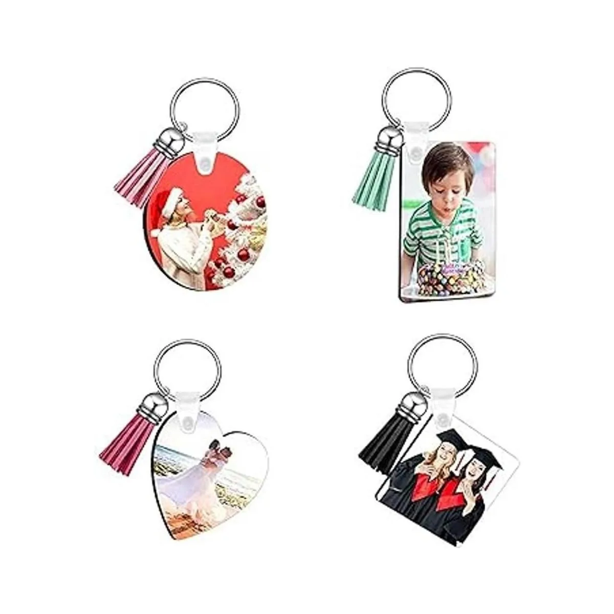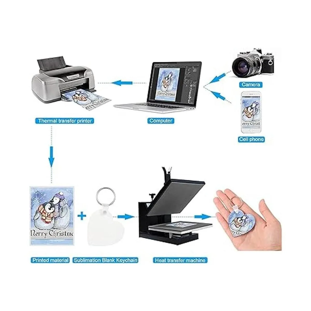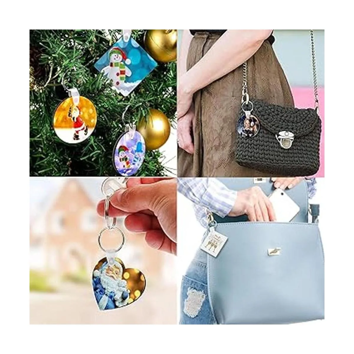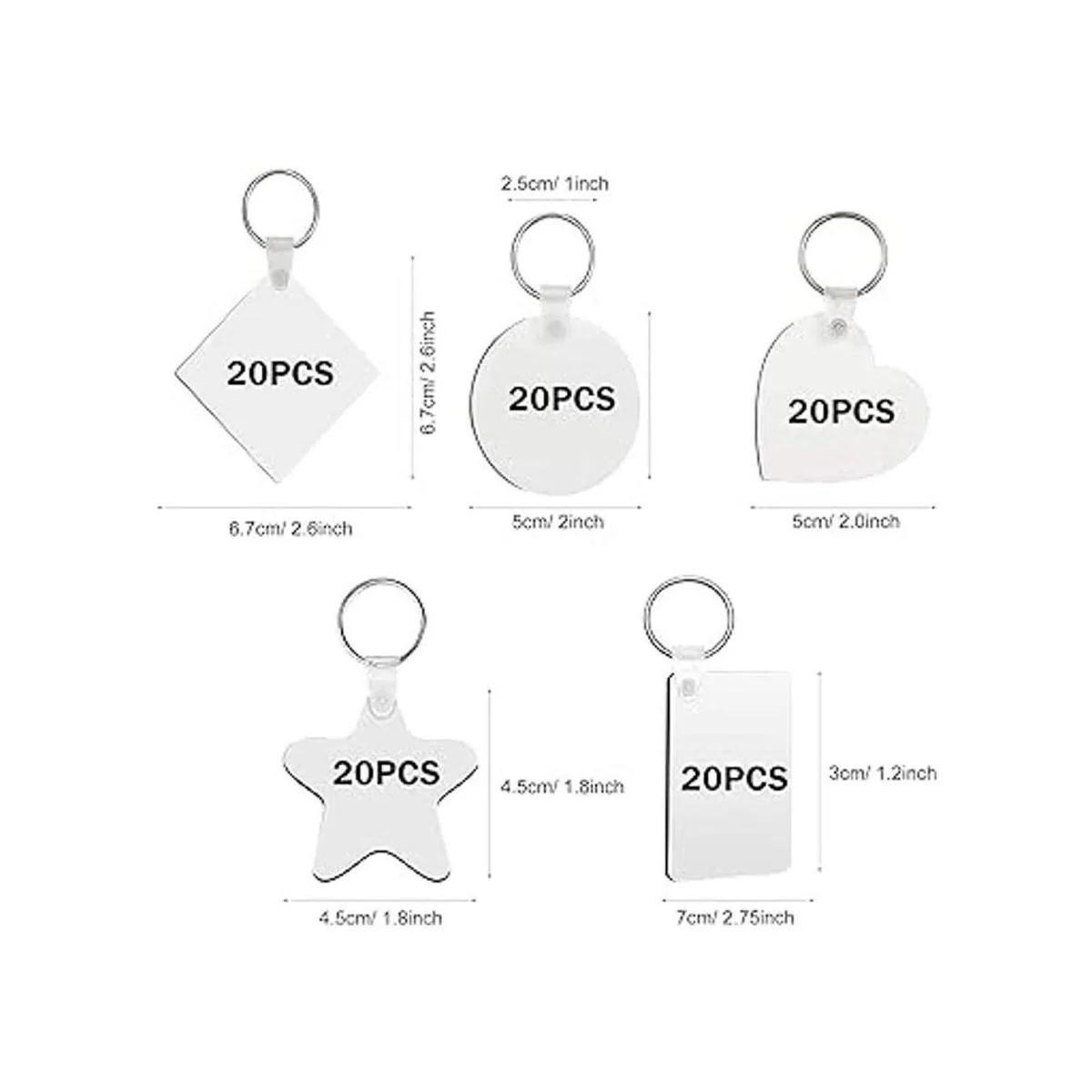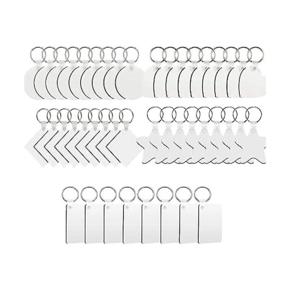 El paquete incluye: 50 llaveros para transferencia de calor en 5 estilos, 10 piezas para cada estilo, como redondo, rectangular, cuadrado, corazón, estrella. 5 formas para satisfacer tus necesidades.