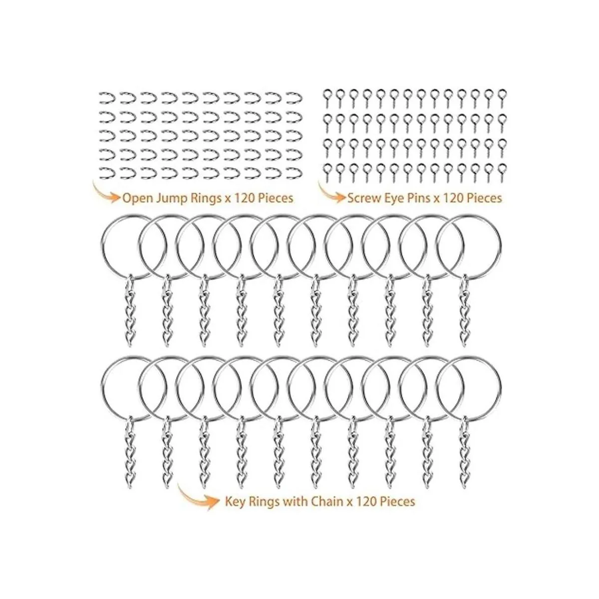 Contenido del paquete: los llaveros Flasoo a granel vienen con 120 llaveros de metal con cadena, 120 anillos abiertos y 120 pines de ojo de tornillo. Total de 360 piezas de llaveros que satisfarán tus necesidades de proyectos de resina de manualidades