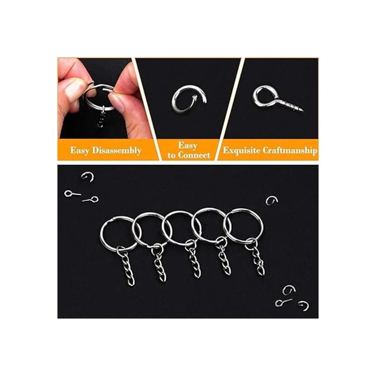 Cómodo de usar: el llavero es conveniente para fijar abalorios, colgantes u otros accesorios. El juego también viene con anillos de salto extra abiertos y pasadores de ojo de tornillo que lo convierten en un juego completo de accesorios, por lo que no necesitas comprar piezas adicionales