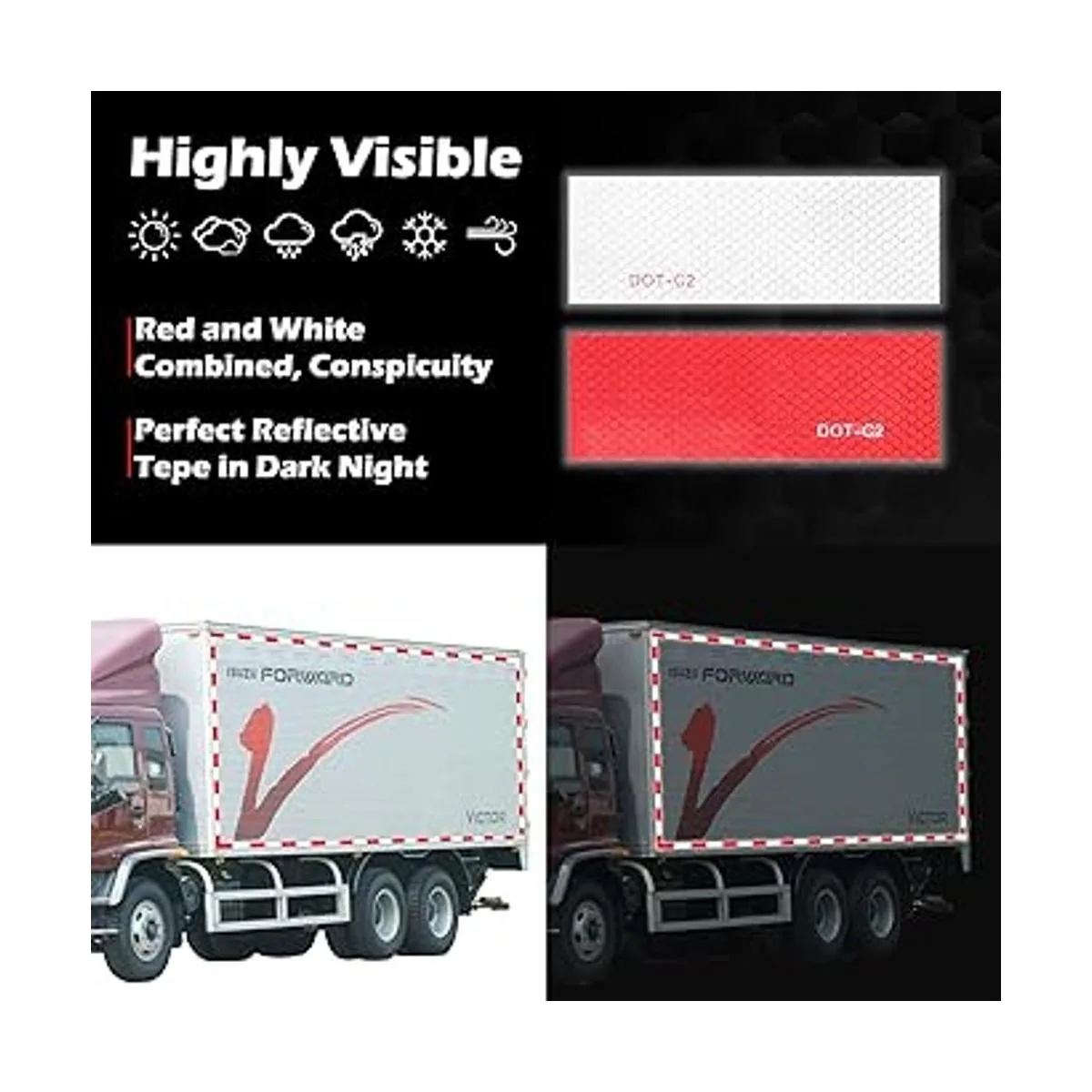 Características del producto: aprobado por DOTC2; PET de alta visibilidad con patrón de diamante; resiste a la intemperie, el agua, la suciedad y el envejecimiento; estabilizado contra los rayos UV, visible desde donde se puede ver las luces traseras en la oscuridad, refleja la luz desde cualquier ángulo; adhesivo de silicona sensible a la presión con gran adherencia inicial al metal, plástico, cemento, vidrio, madera, cartón y otras superficies duras lisas, extremadamente fácil de manejar y aplicar.