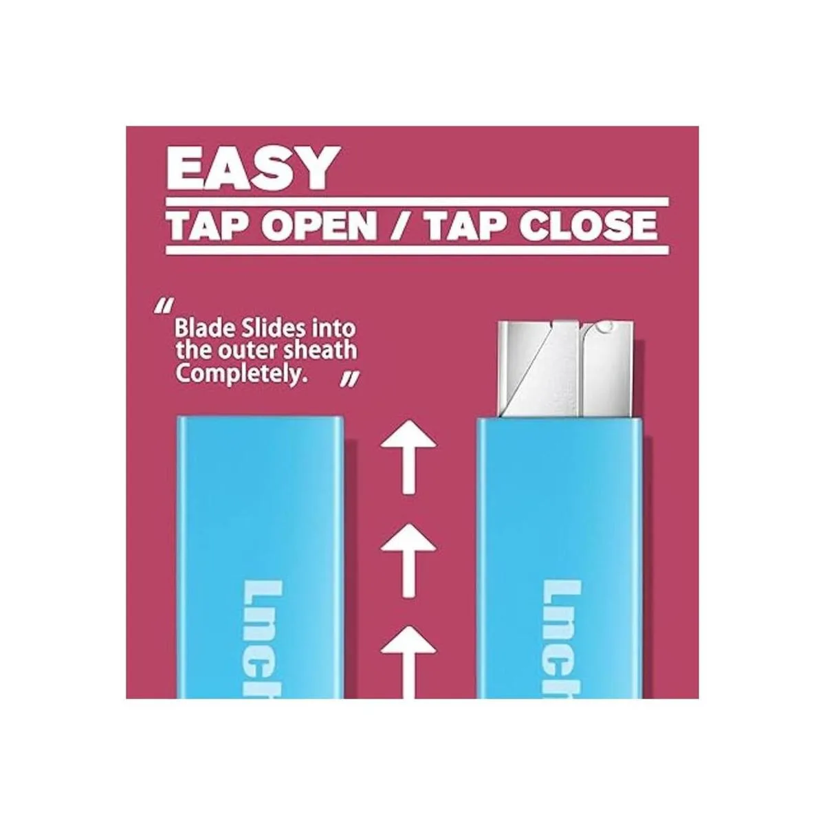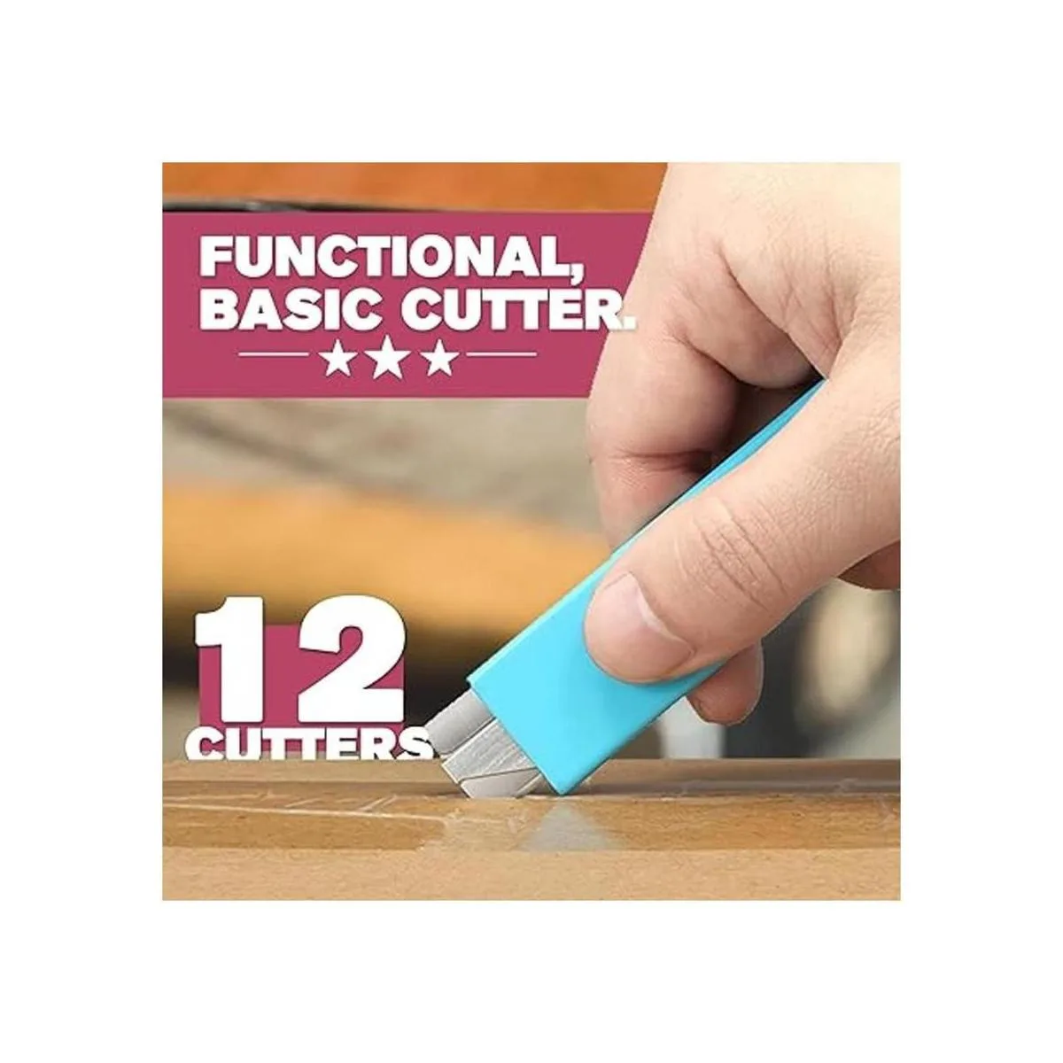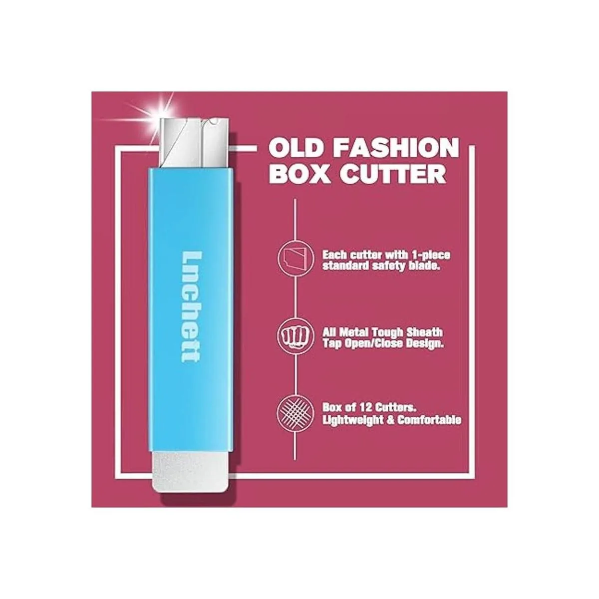 Lnchett Cortador de caja, paquete de 12 mini cortadores de cartón retráctiles para paquetes, cajas y papel, funda resistente de metal, cortador básico funcional con funda, diseño de bola de bloqueo