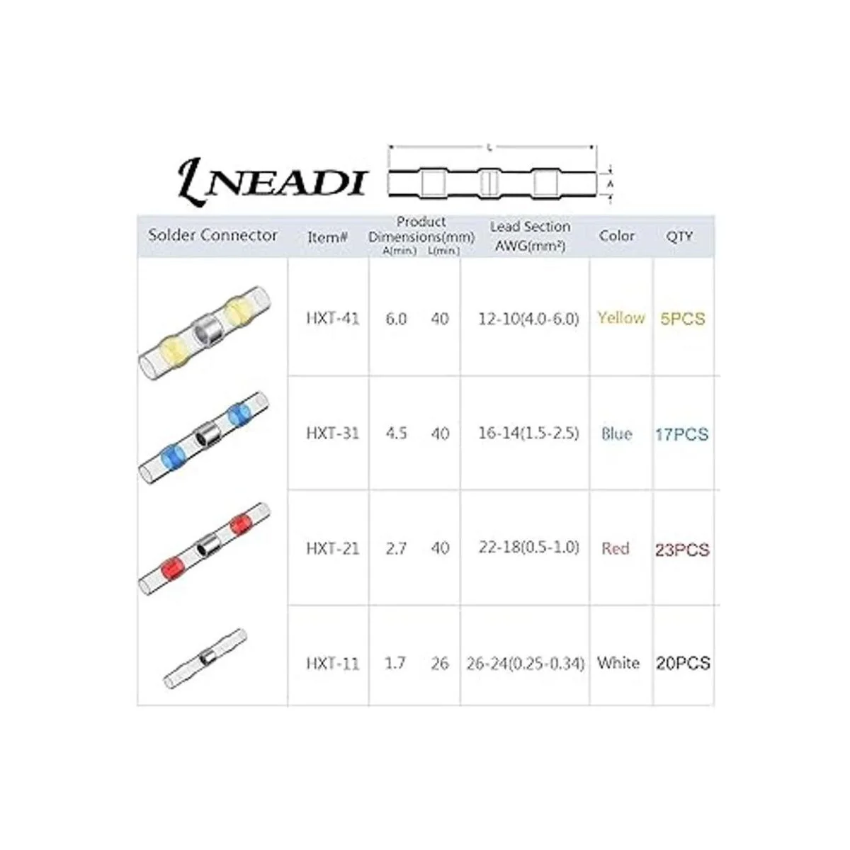 LNEADI 65 conectores de alambre de sellado de soldadura, conectores de alambre, conectores de cable termorretráctiles, conectores eléctricos, conectores de cable automotriz, conectores de cable de altavoz termorretráctil
