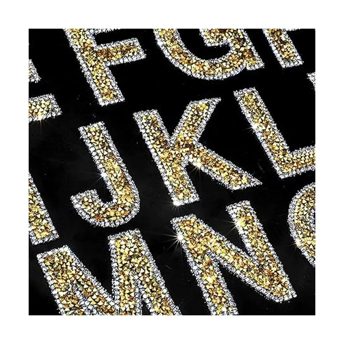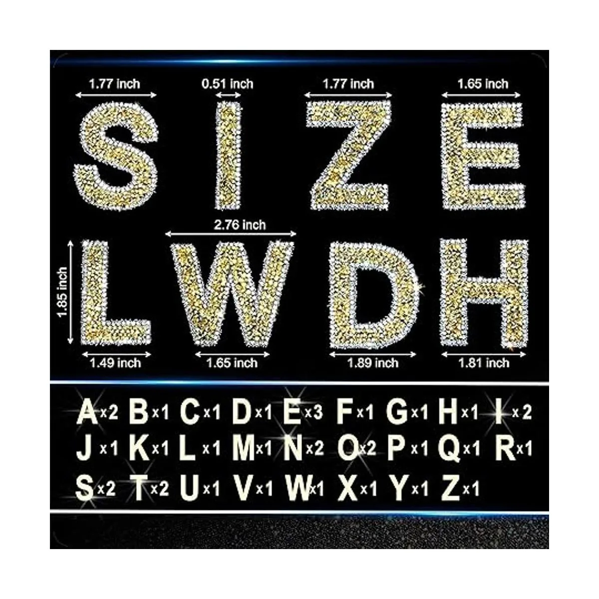 Locacrystal 68 calcomanías de letras con diamantes de imitación brillantes del alfabeto AZ, letras autoadhesivas, diamantes de imitación de cristal, letras termoadhesivas para ropa, manualidades, decoraciones de bricolaje oro blanco, 1.85 pulgadas