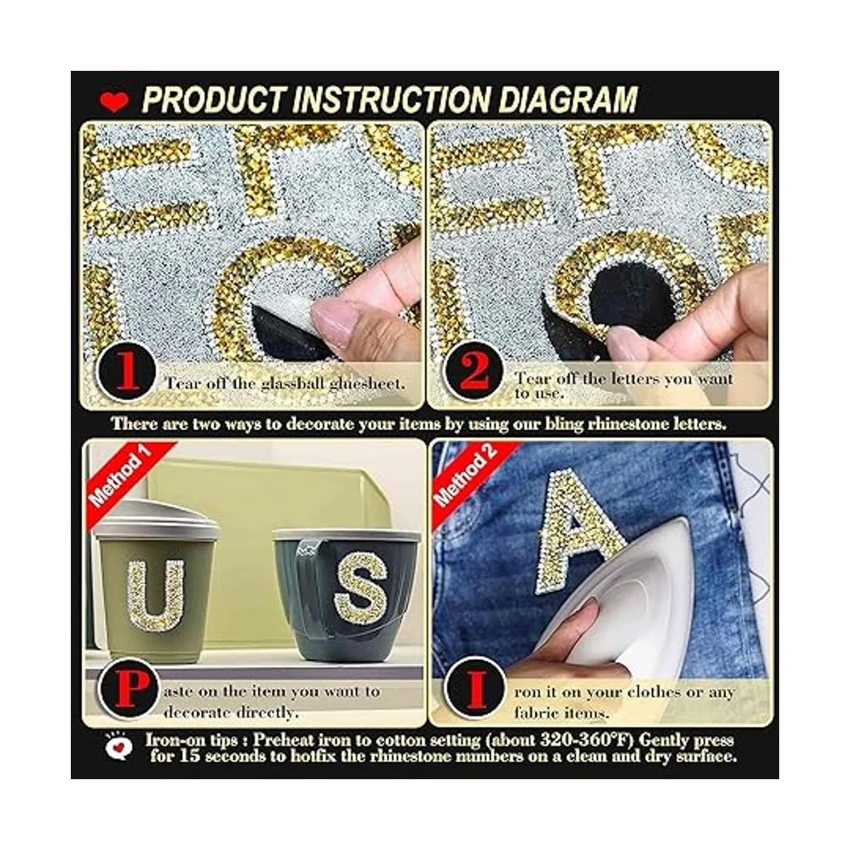 HIGH QUALITY AND ENVIRONMENT FRIENDLY Each letter sticker is made of 2 kinds of rhinestones, the letters are made of resin rhinestones, and the border is wrapped with crystal rhinestones, each of our rhinestone on letters sticker is with 17 multifaced cutting, both are AAA grade standard, shiny and unique. We use strong adhesive and hightemperature resistance sticker, environment friendly, and no pungent odor.