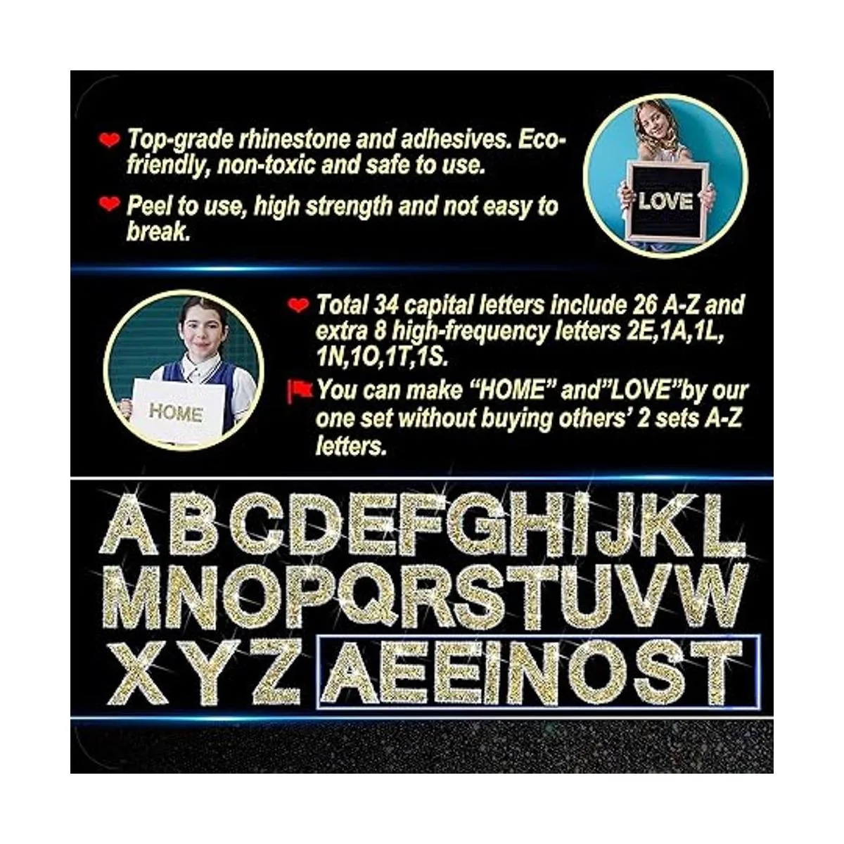 PERFECT FOR DIY Our blinking rhinestone letter stickers include full two sets of 26 AZ alphabet letters plus 8 common letters that ensure your DIY is personalized and eyecatching. Simply use letters to form names, words, banners or brands, and use on jackets, hats, hairpins, belts, wedding decor, hairbands, and more.