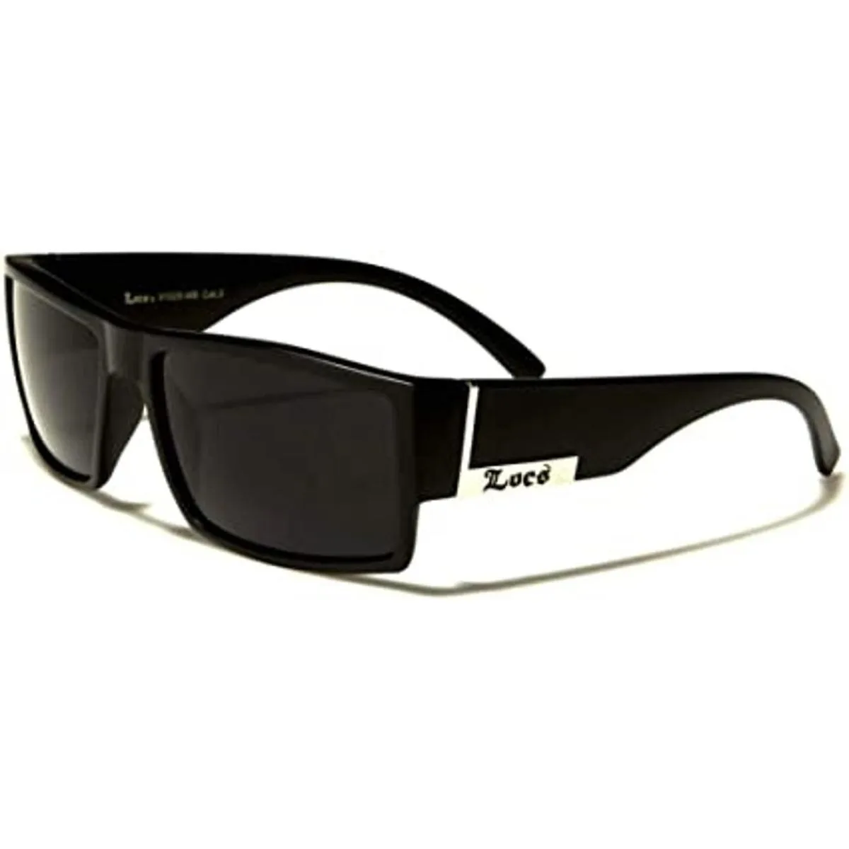 Locs Gafas de sol de gángster con parte superior plana para hombre, marco plateado negro 91026, Negro mate, L