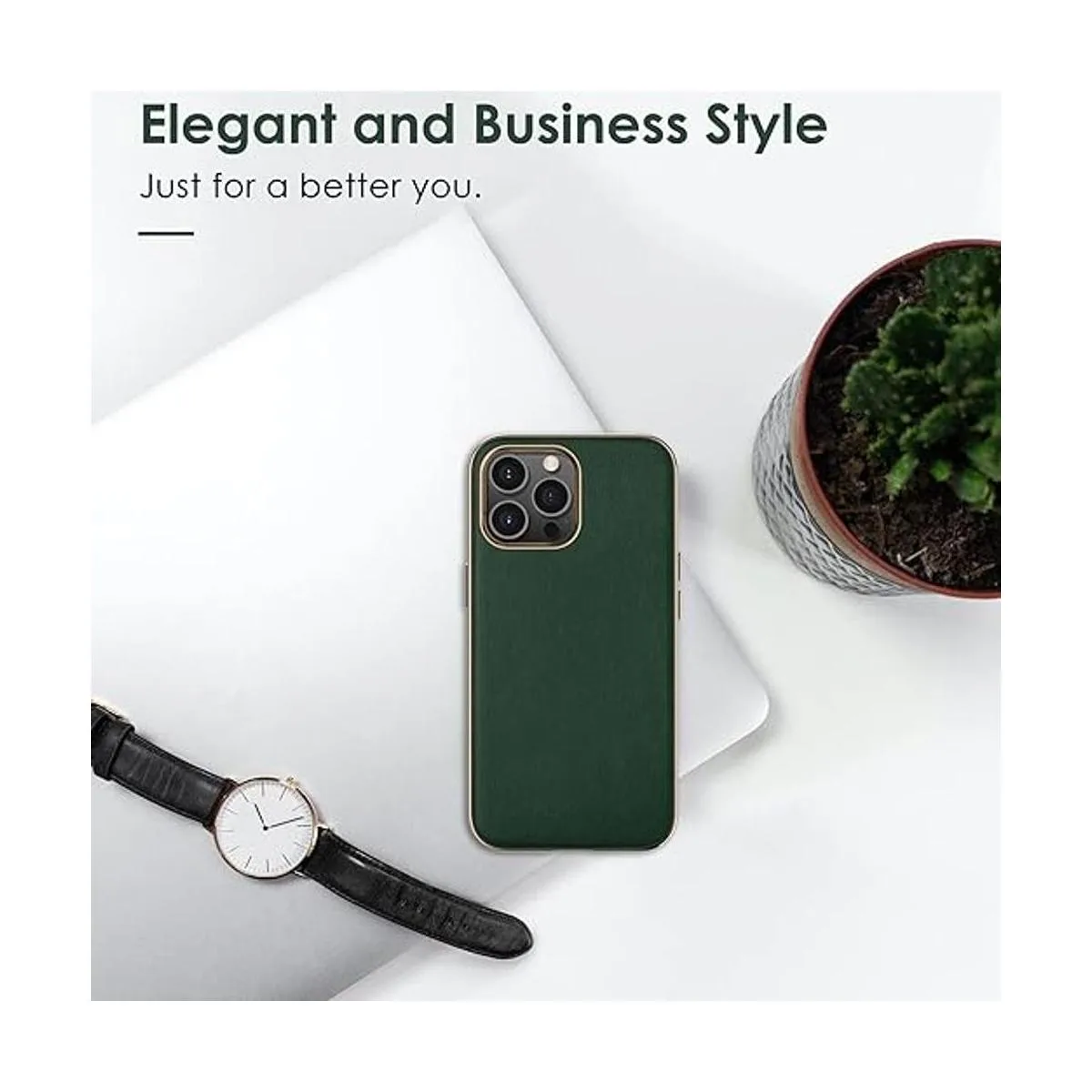 Exquisita mano de obra y diseño elegante: cuero vegano de alta calidad combinado con un marco galvanizado dorado único que crea un aspecto lujoso. Mantiene la forma tradicional de cortar el cuero logra una exquisita cubierta trasera para iPhone 14 Pro.
