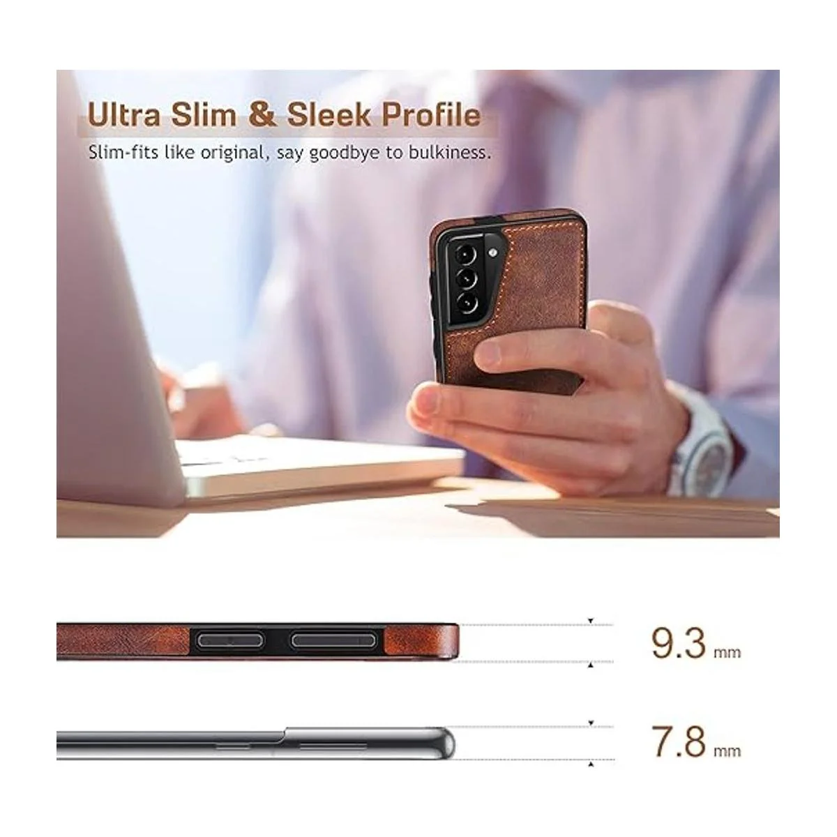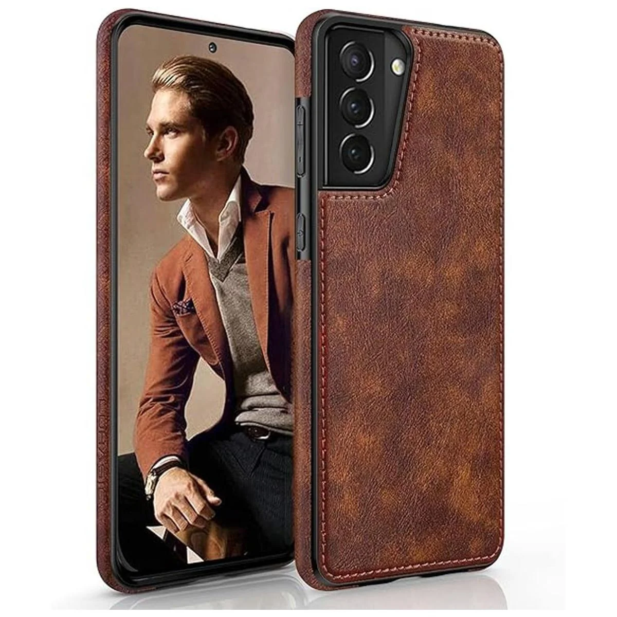 Elegante diseño de cuero profesional Hecho a mano con funda de piel sintética vegana de alta calidad para Galaxy S21 Plus, combina con costuras finas de diseño sofisticado, simple pero elegante, funda vintage para Galaxy S21 Plus para hombres y mujeres.