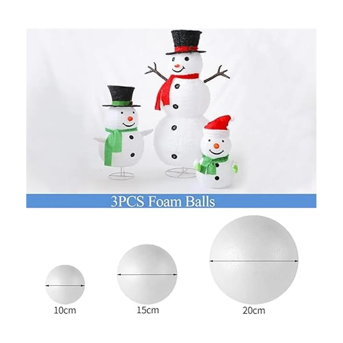 LOKIPA 3 bolas de poliestireno blancas, 3 tamaños de bolas de espuma blanca de poliestireno para manualidades de arte, bricolaje, hogar, proyectos escolares y decoraciones de fiesta