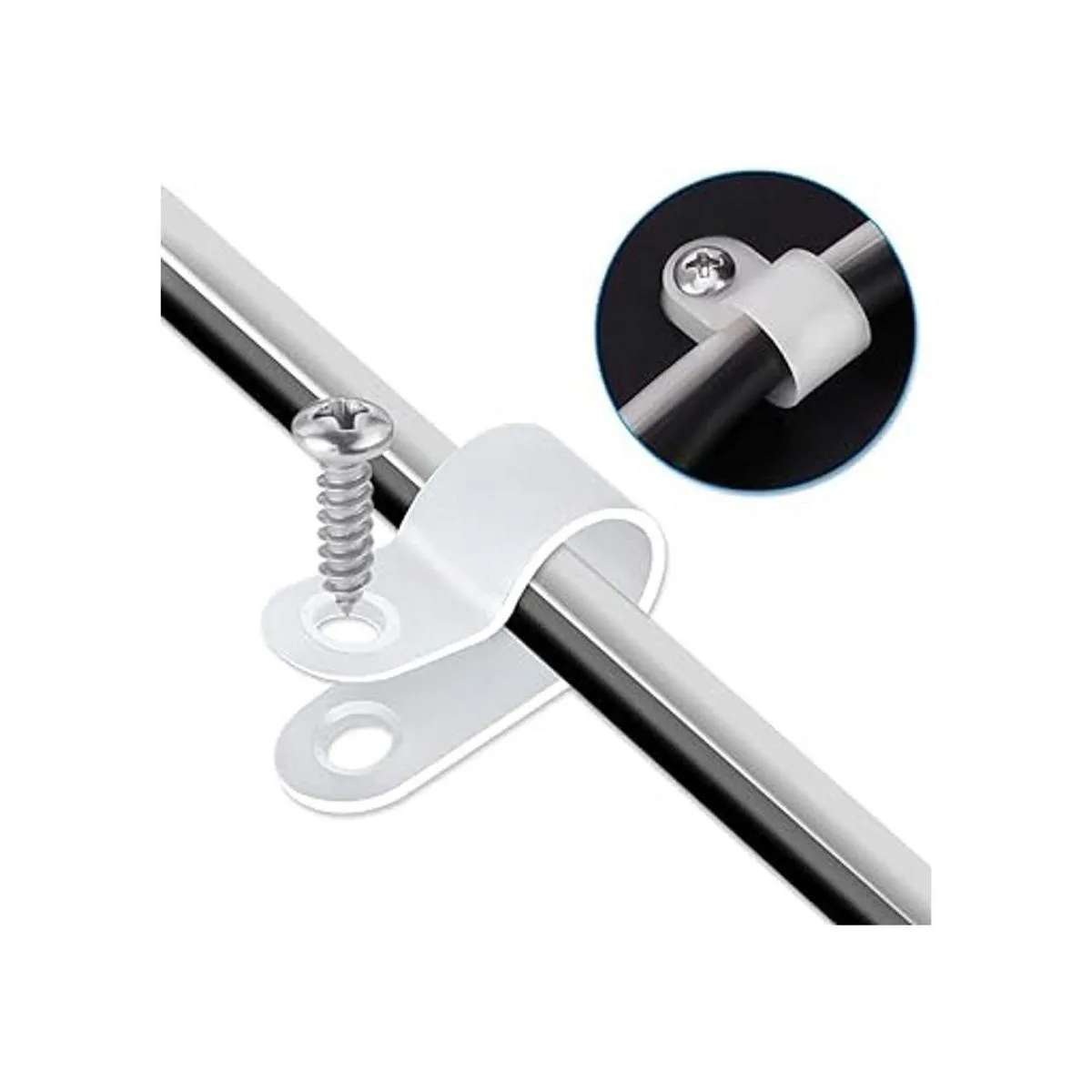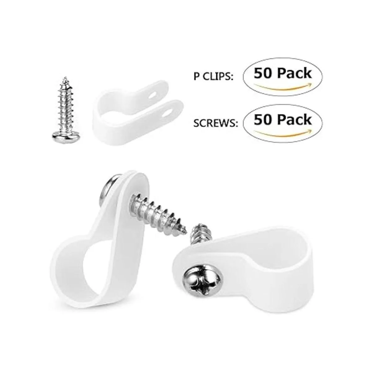 Paquete: el paquete incluye 50 clips de cable estilo P de 1/4 pulgadas y 50 tornillos Phillips.