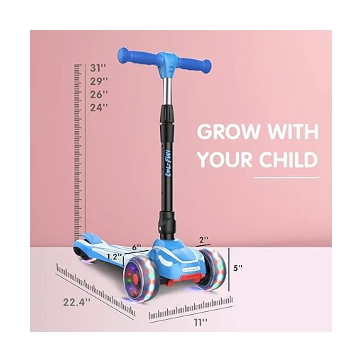 Construido para durar: Te preocupa que tu hijo se aburra de nuevos juguetes o crezca demasiado rápido El patinete para niños de 3 a 12 años es un regalo perfecto para crecer con los niños. El manillar con bloqueo de seguridad giratorio tiene 4 alturas ajustables 24/26/29/31 pulgadas para acomodar niños y niñas de 3 a 12 años. Diez años e incluso más para durar