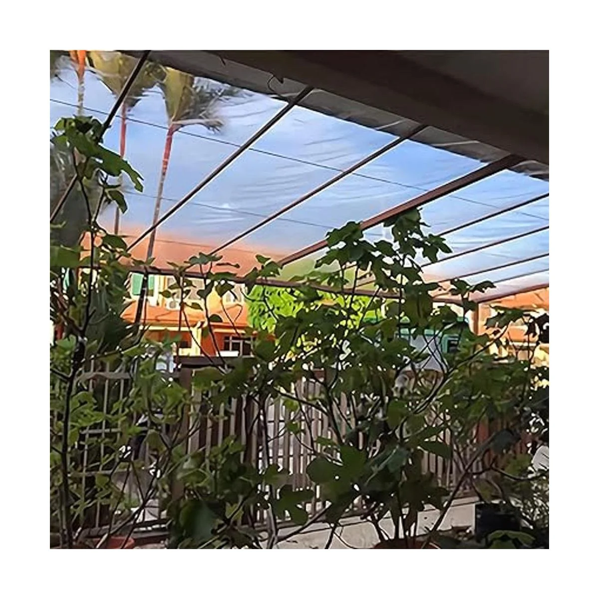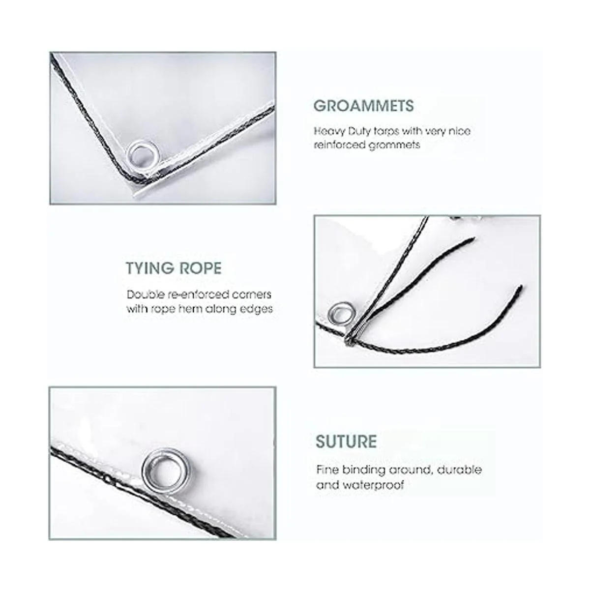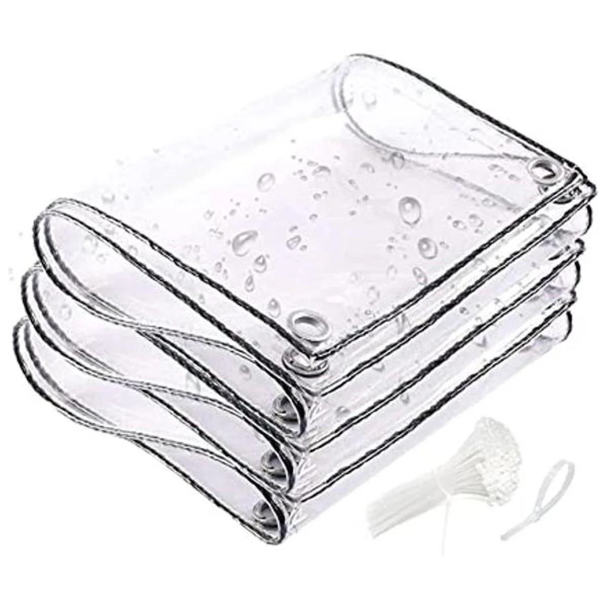 Material de alta calidad: la lona protectora está hecha de PVC grueso, los bordes están herméticamente sellados con una cuerda de nailon negro, transparente, impermeable, protección contra el viento, resistencia al desgarro, fácil de plegar, no se deforma fácilmente, fácil de limpiar, se puede utilizar en todas las estaciones.