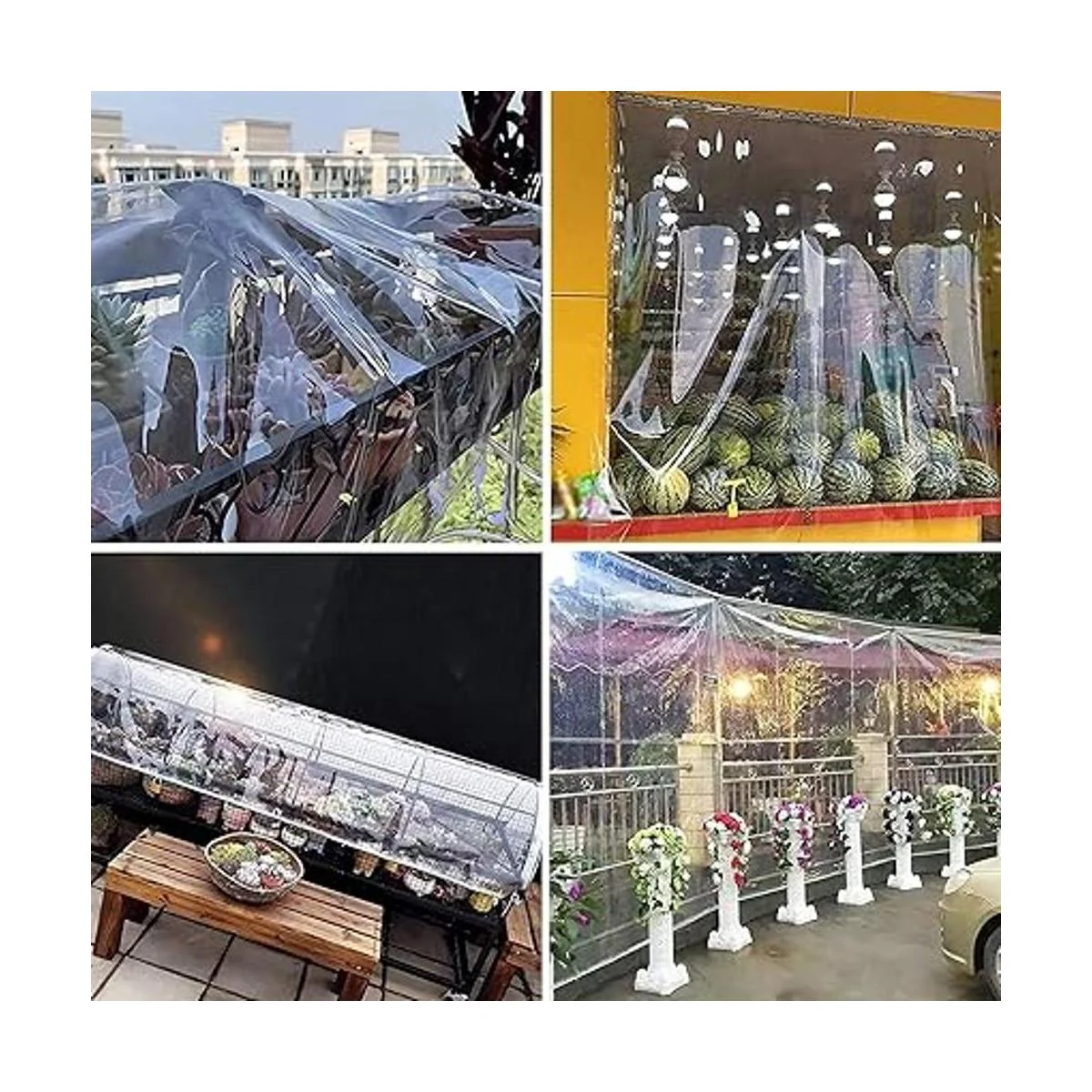 Alta transparencia: el material de PVC es súper transparente, lo que asegura que puedas vigilar las cosas que estás cubriendo, todo está bajo control. Lona para uso repetido y prolongado. Es adecuada para condiciones climáticas extremas y en el lugar de trabajo.