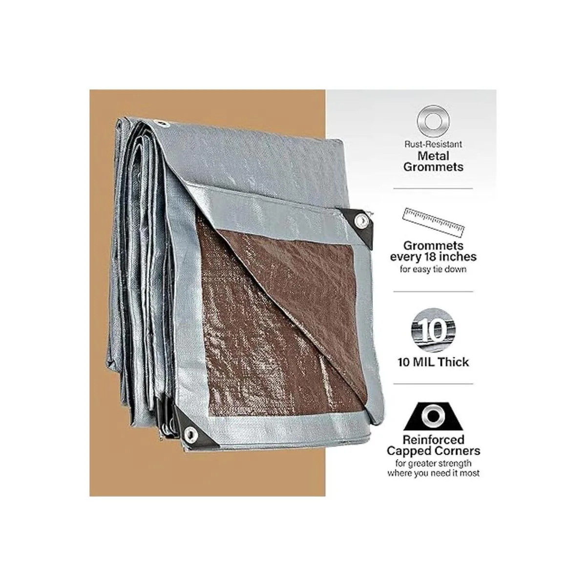 Lona resistente de 10 x 12 pulgadas, 10 mil de grosor, impermeable, resistente al desgarro y a la decoloración, alta durabilidad, tratamiento UV, ojales cada 18 pulgadas. plateadomarrón reversible 10 x 12 pies
