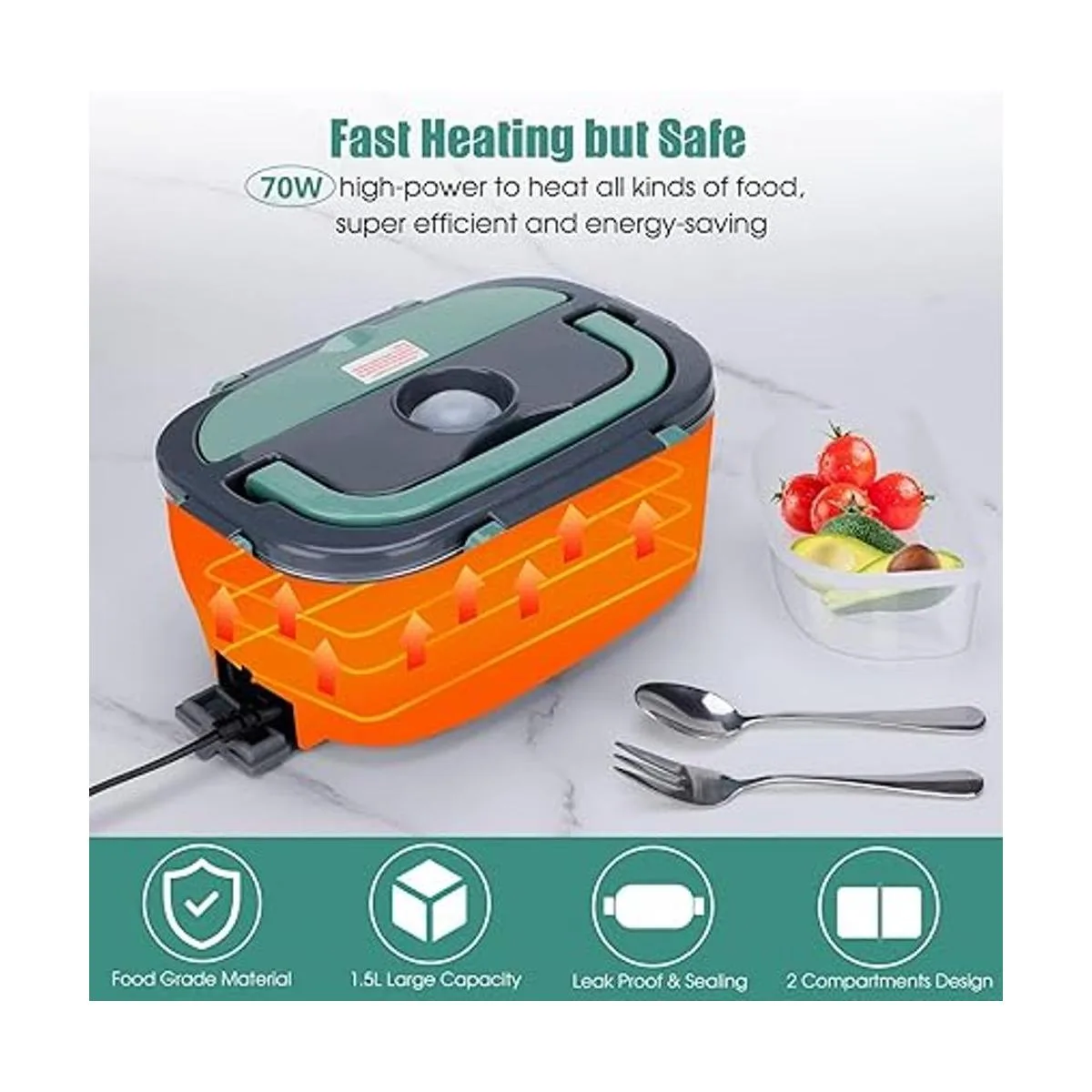 Lonchera eléctrica con 2 compartimentos, Kabbas 70 W, calentador de alimentos portátil a prueba de fugas, para adultos, automóvil, camión, trabajo, 1224 V y 110220 V, con contenedor extraíble de 1.5 L