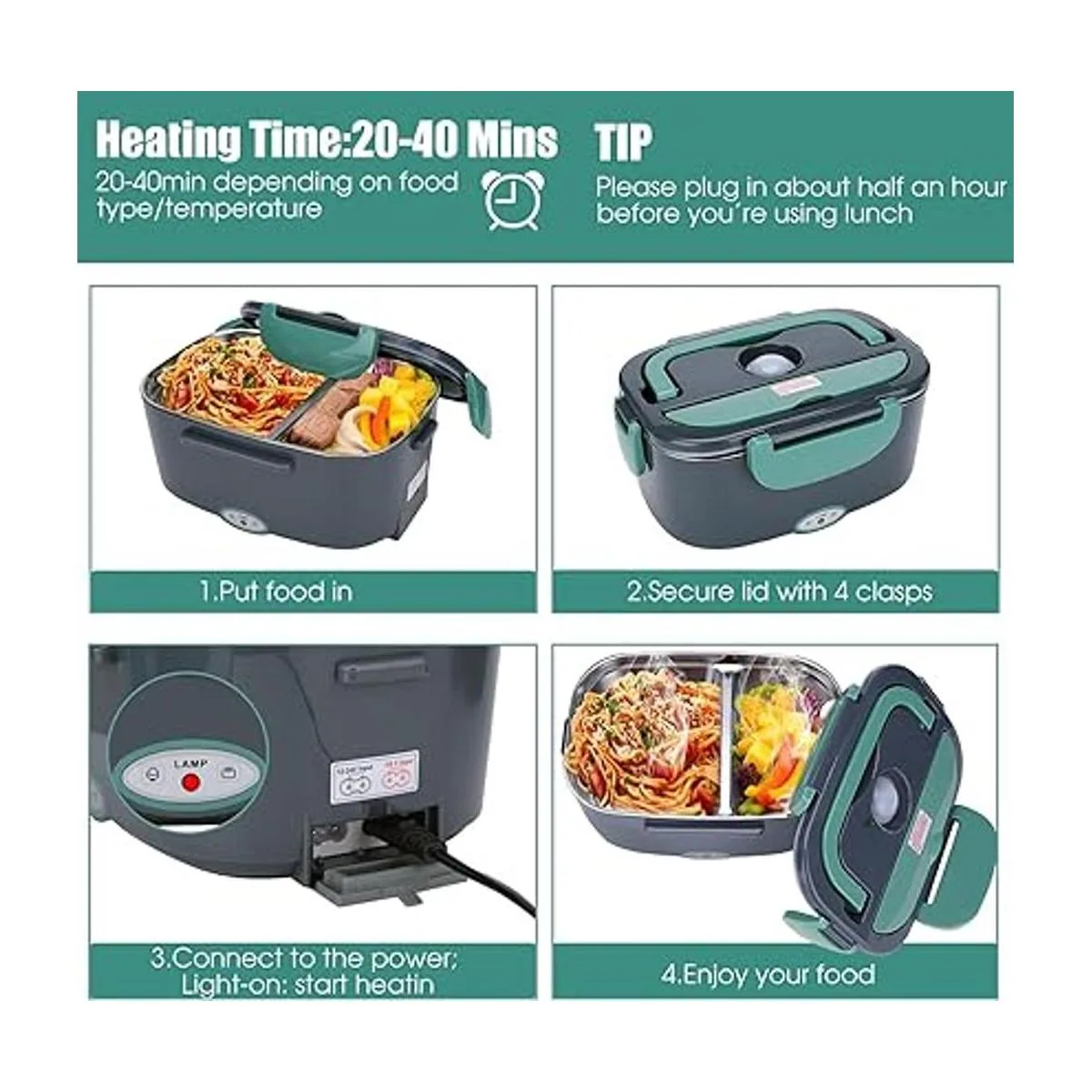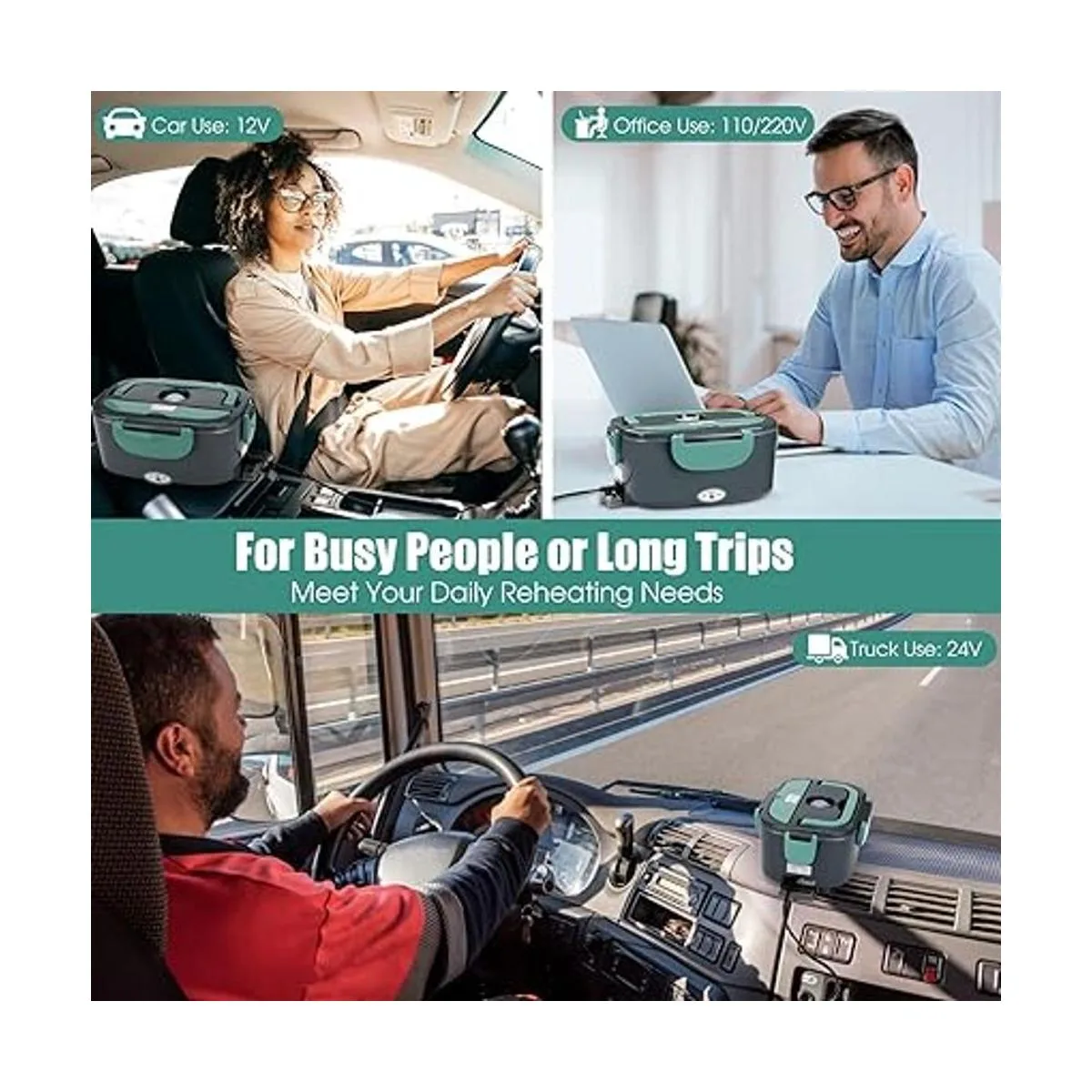 Disfruta de comidas calientes en cualquier momento y en cualquier lugar: di adiós a la comida fría o rápida. La lonchera portátil Kabbas para calentar alimentos soporta 110 V/220 V en el hogar/oficina y 12 V/24 V para uso en coche/camioneta. Ahora simplemente conecta y calienta tu comida con la lonchera eléctrica, disfruta de una comida caliente y saludable dondequiera que vayas