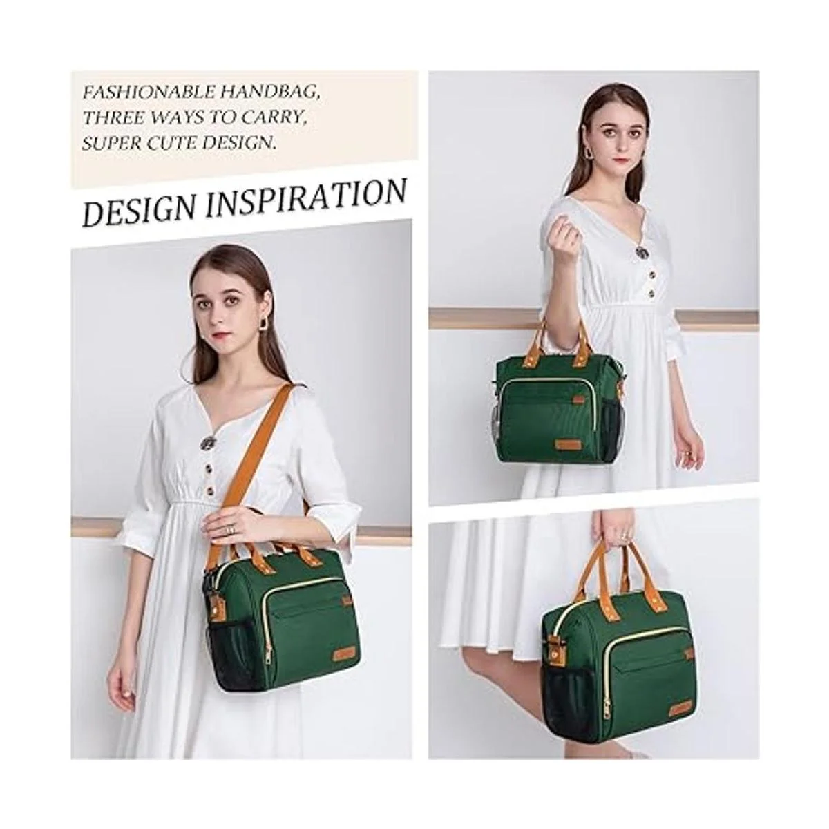 Cómoda y portátil : la lonchera reutilizable cuenta con un asa reforzada en la parte superior y viene con una correa extraíble y ajustable para hombro que se puede ajustar de 15 a 27 pulgadas 38.1 a 68.58 cm para ofrecerte más opciones de transporte. Tiene tres opciones para llevar como un bolso, bolso de hombro, bolso de mano