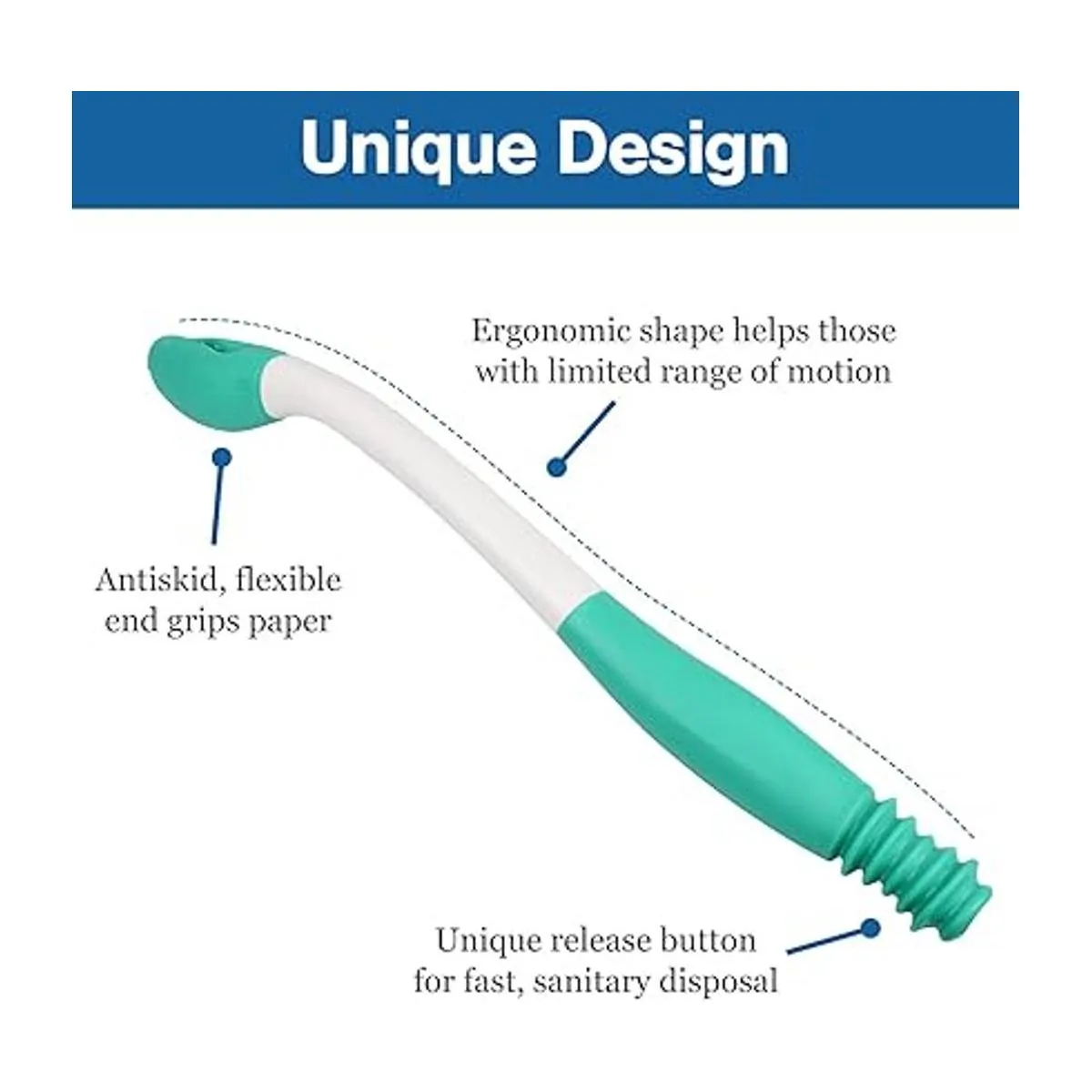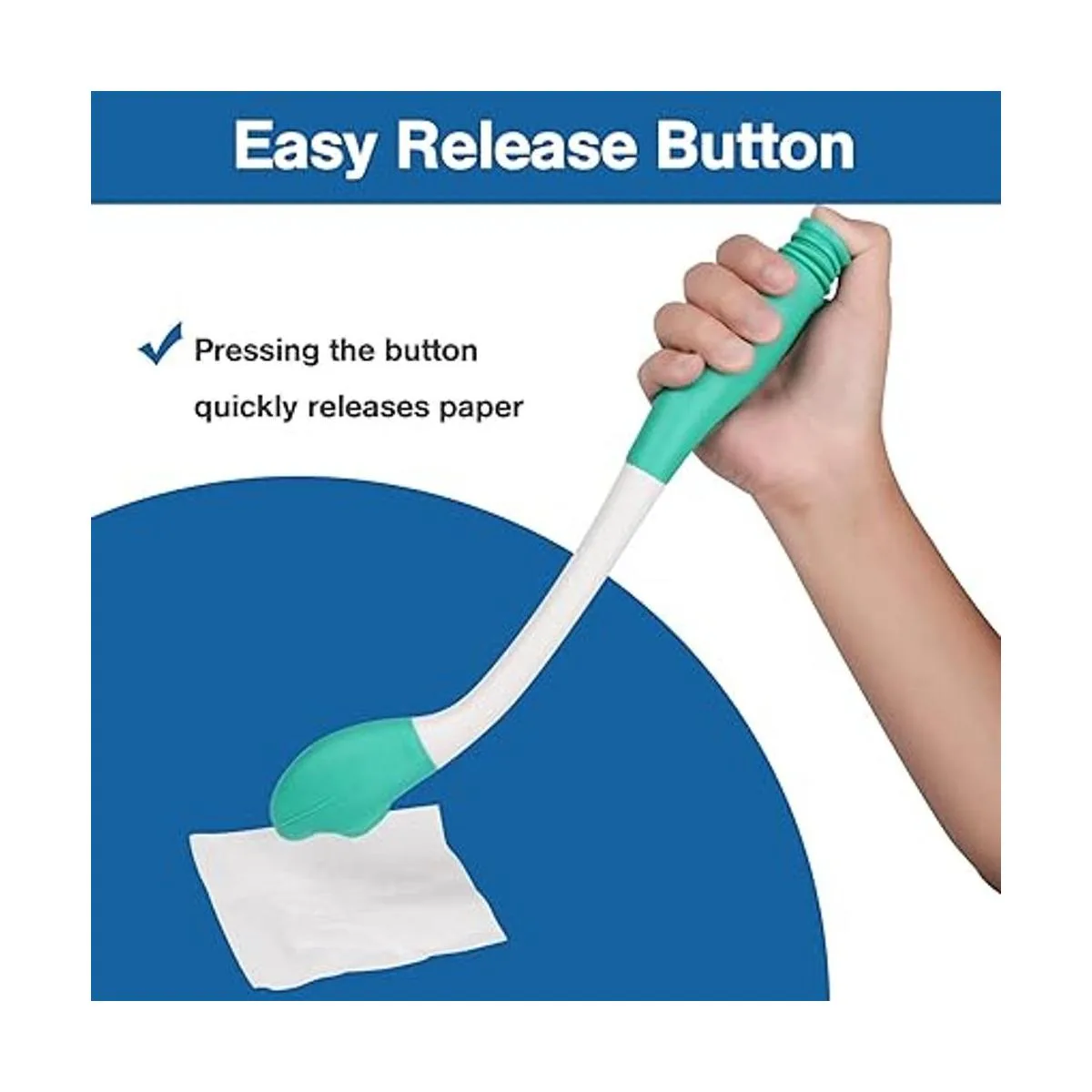 Promueve la autosuficiencia: inserta unas cuantas hojas de papel higiénico o una toallita prehumedecida en el cabezal suave y flexible de la ayuda del inodoro. Este extremo acolchado agarra el papel o se limpia de forma segura para una comodidad de limpieza. Con un botón en el extremo, puede liberar automáticamente el pañuelo usado.