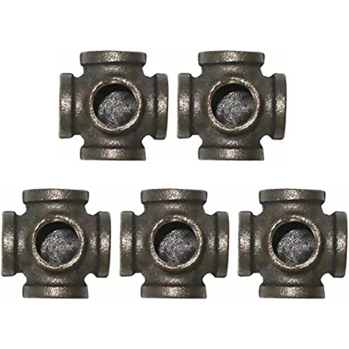 Long TAO 12 Pipe Decor Pipe Fitting Industrial Steel Gray,Outlet Cross Female Tube Connector Tubos roscados para mesas de construcción, sillas, estanterías y muebles personalizados, 5Way Fitting, paquete de 5