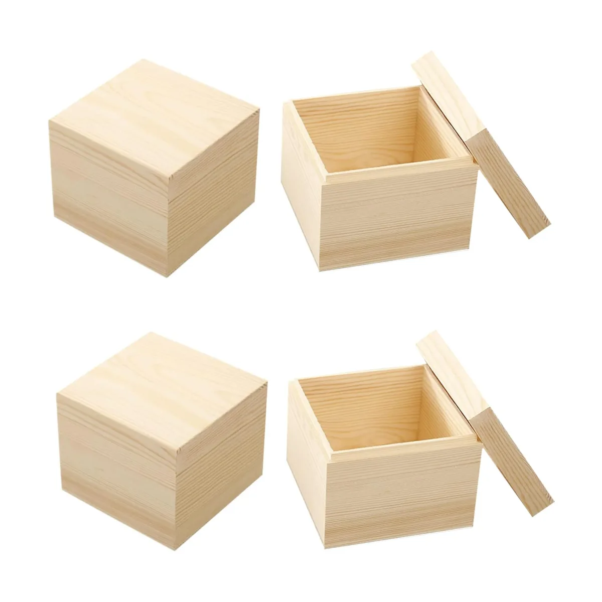 LONG TAO 4 cajas cuadradas de madera de 3.9 x 3.9 x 3.1 pulgadas, cajas de madera para decorar cajas de almacenamiento de madera, cajas de almacenamiento de madera, cajas naturales para manualidades, manualidades, pasatiempos, almacenamiento en el hogar