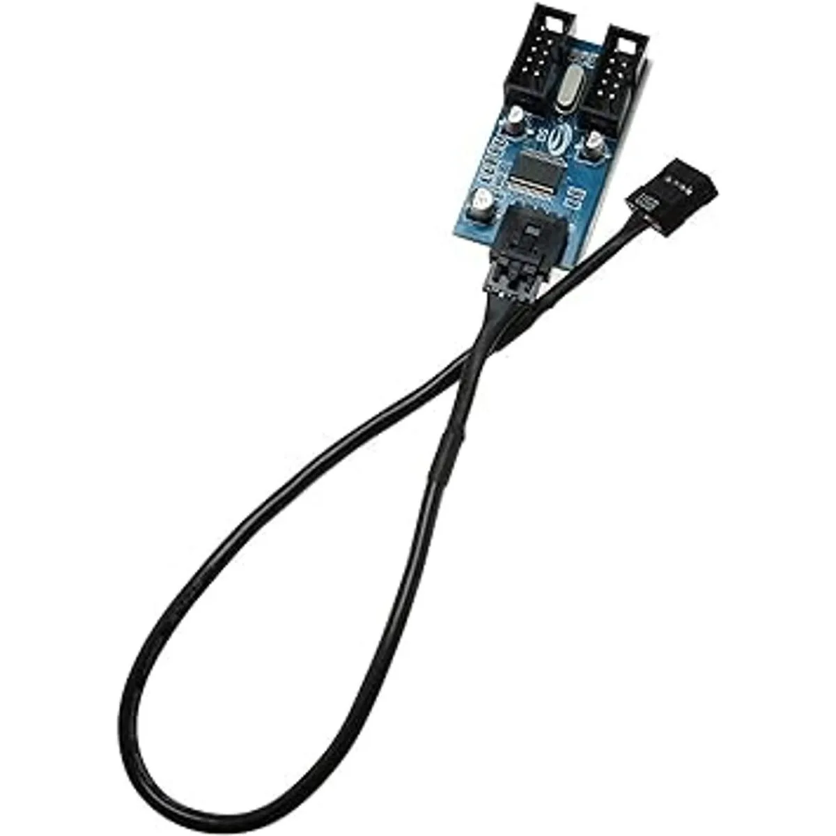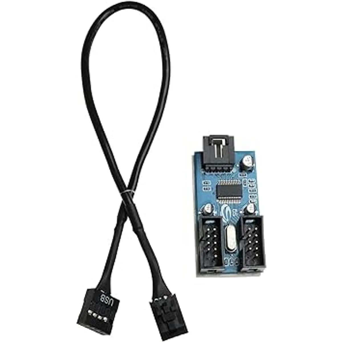 Longdex Adaptador de conector de cable divisor USB de 9 pines hembra de 1 a 2 macho con cable de extensión de 11.8 in