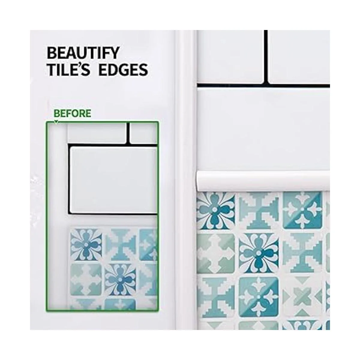 LONGKING Tiras autoadhesivas para calafatear y recortar de 25 pies para azulejos, suelos, techos, encimeras y más en color blanco
