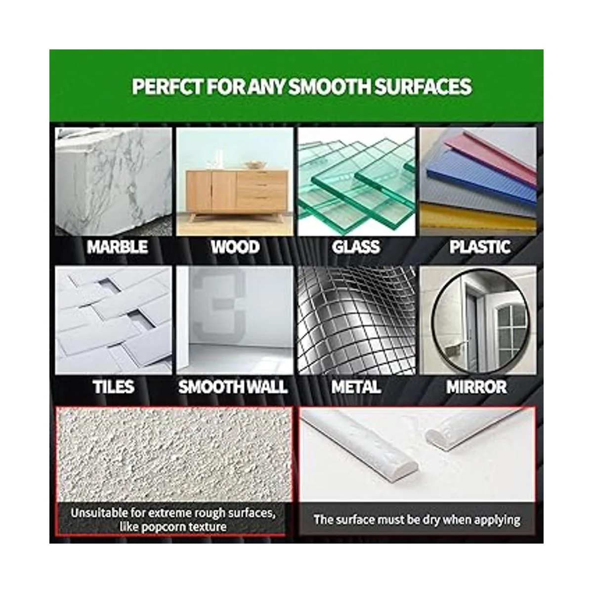 Amplia gama de aplicaciones: el borde flexible puede adherirse a casi cualquier superficie lisa, incluyendo techos, azulejos, paredes, puertas, suelos y mucho más.
