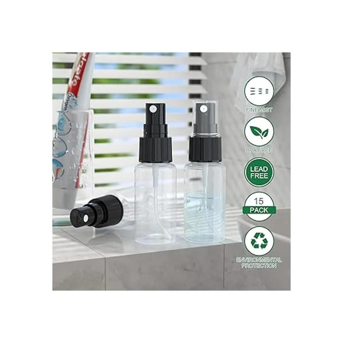Incluye: 15 botellas vacías de plástico de alta calidad con diseño de cabezal de pulverización fina para rellenar agua o cosméticos en viajes. Un mini embudo de plástico, ideal para rellenar cosméticos líquidos en botellas y contenedores.