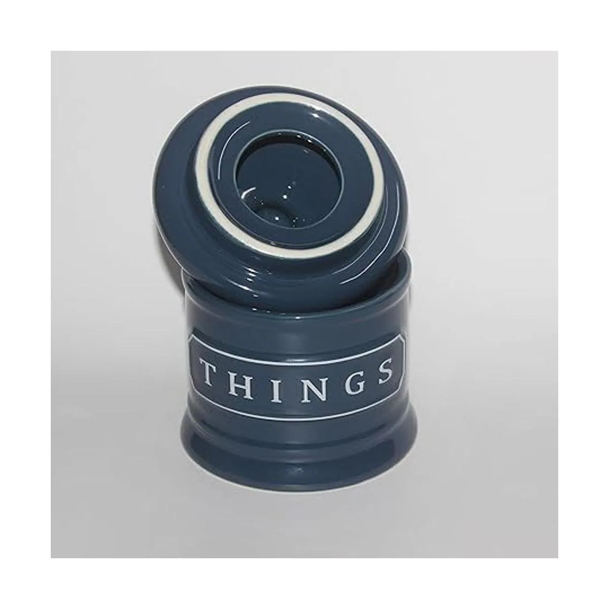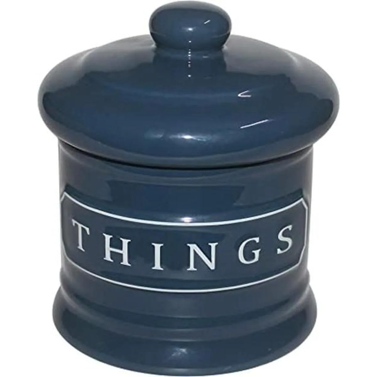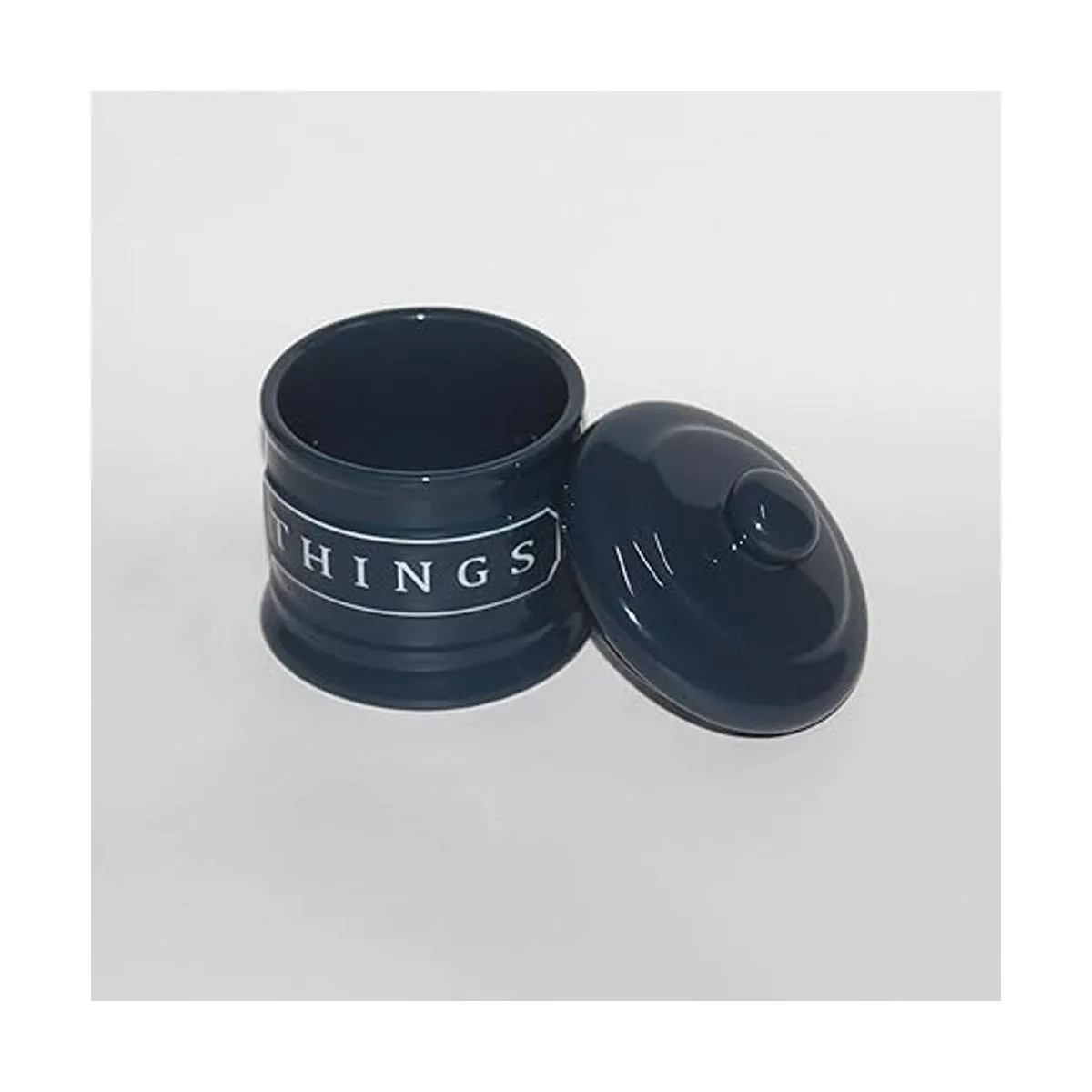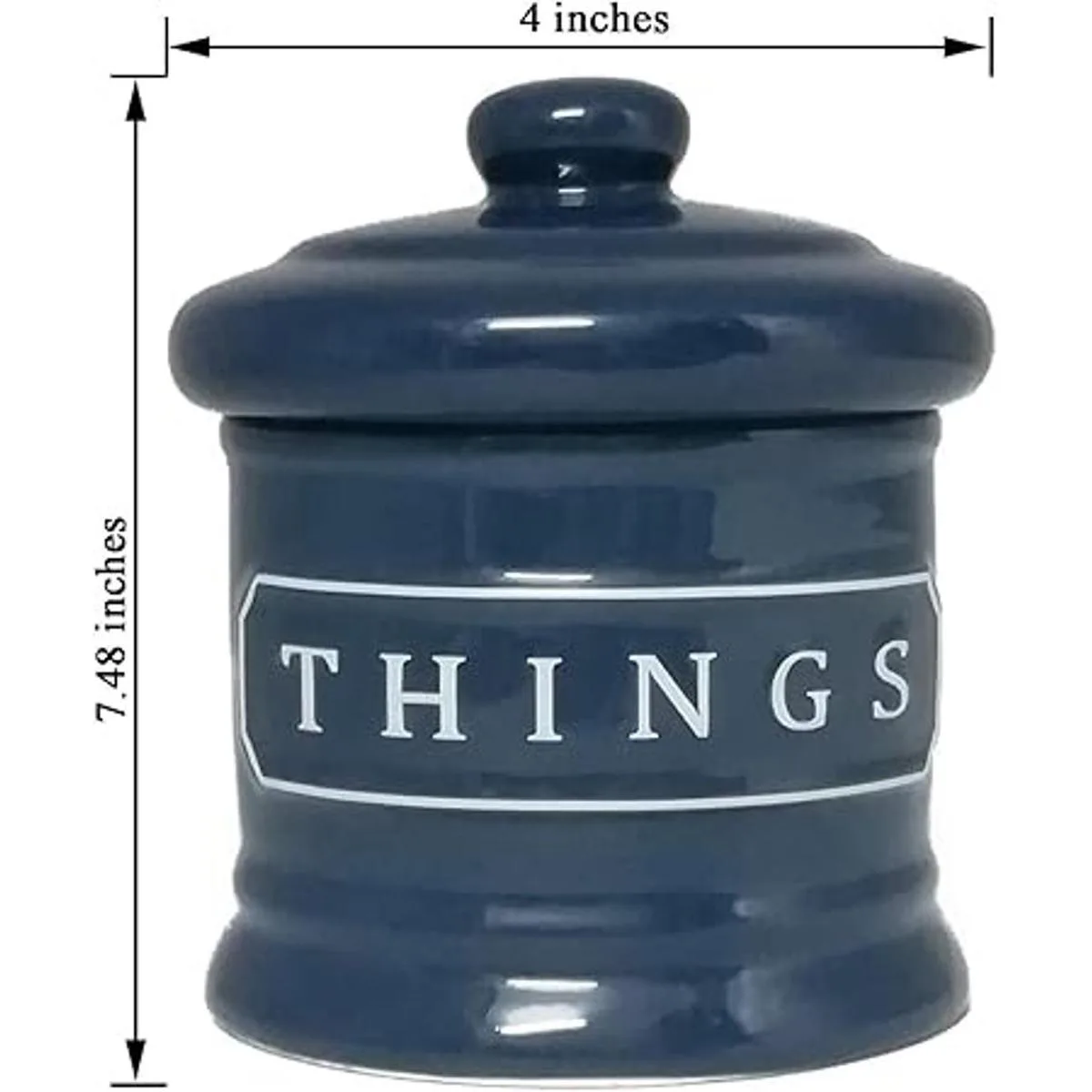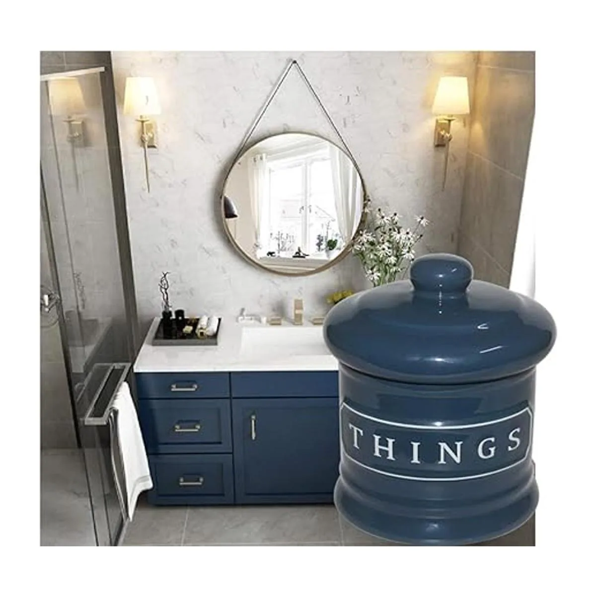 Lonovel Organizador de almacenamiento de baño, para baño, para bolas de algodón, botellas, cosméticos, esponjas de maquillaje, botes de cerámica para accesorios de baño, soporte con tapa para decoración del hogar, color azul cobalto