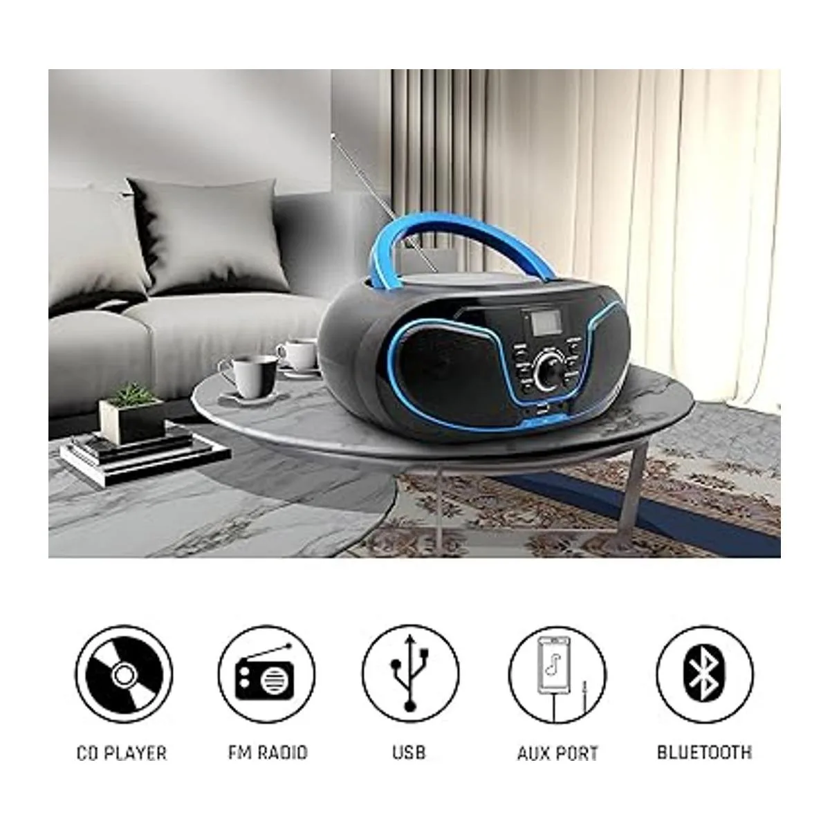 Reproductor de CD multifunción . Reproductor de CD portátil Boombox . Altavoz Bluetooth HiFi . Radio FM . Entrada AUX . Compatible con USB y repetidor A a B. El jugador 5 en 1 hace que tu vida sea más colorida y trae sentimientos y recuerdos inolvidables.