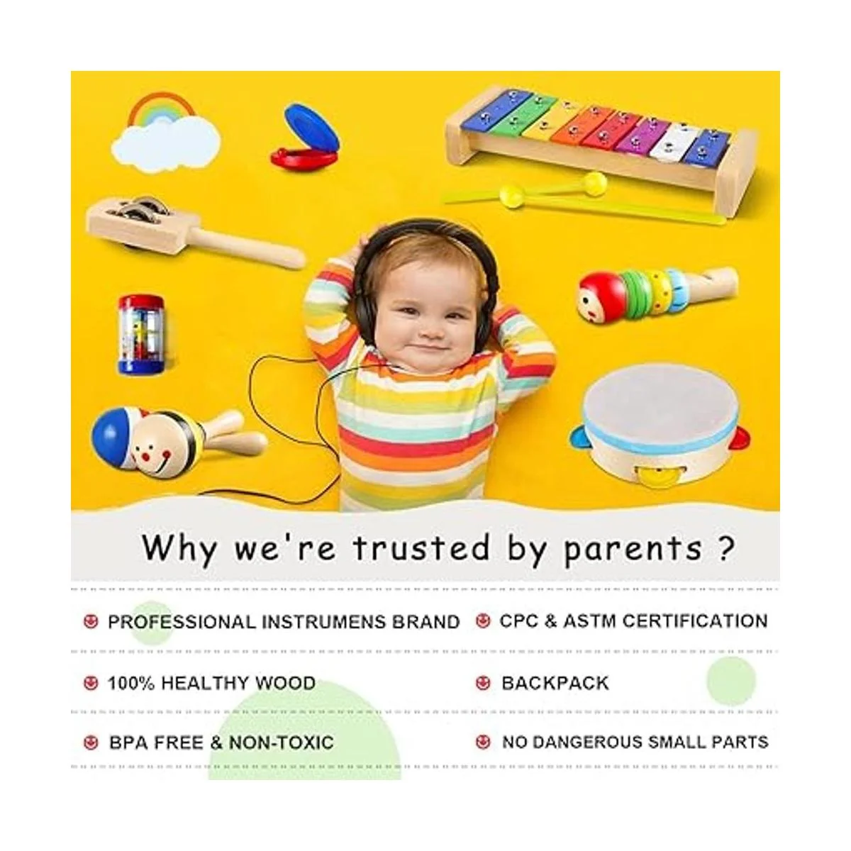 Instrumentos musicales perfectos para niños Estos juguetes musicales para niños pequeños de 1 a 3 años son los mejores. Este juego de música para niños hace que tus pequeños músicos puedan apreciar diferentes tonos, volúmenes y ritmos con el juego de instrumentos para bebé. Juguetes preescolares perfectos para regalo de cumpleaños o Navidad de los niños.