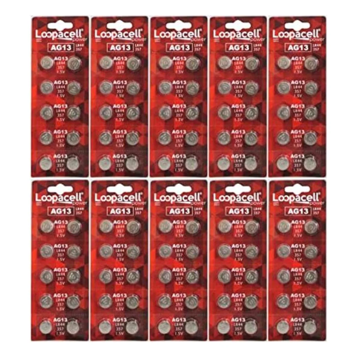Loopacell, LR44 AG13 357 baterías botón, 100 unidades