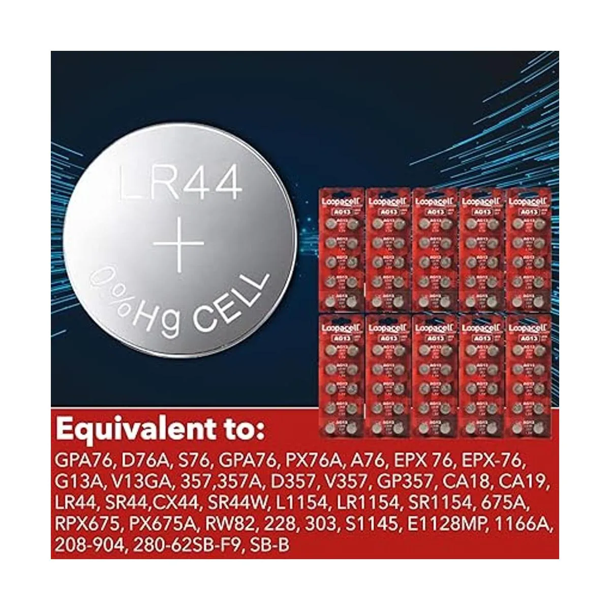 100 unidades loopacell marca sustituye LR44 AG13 LR44 357 y todos los equivalentes