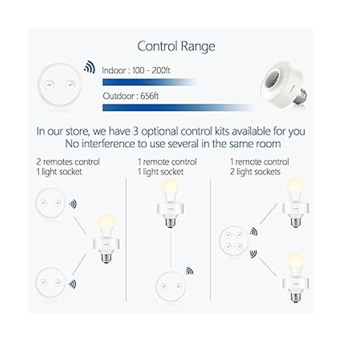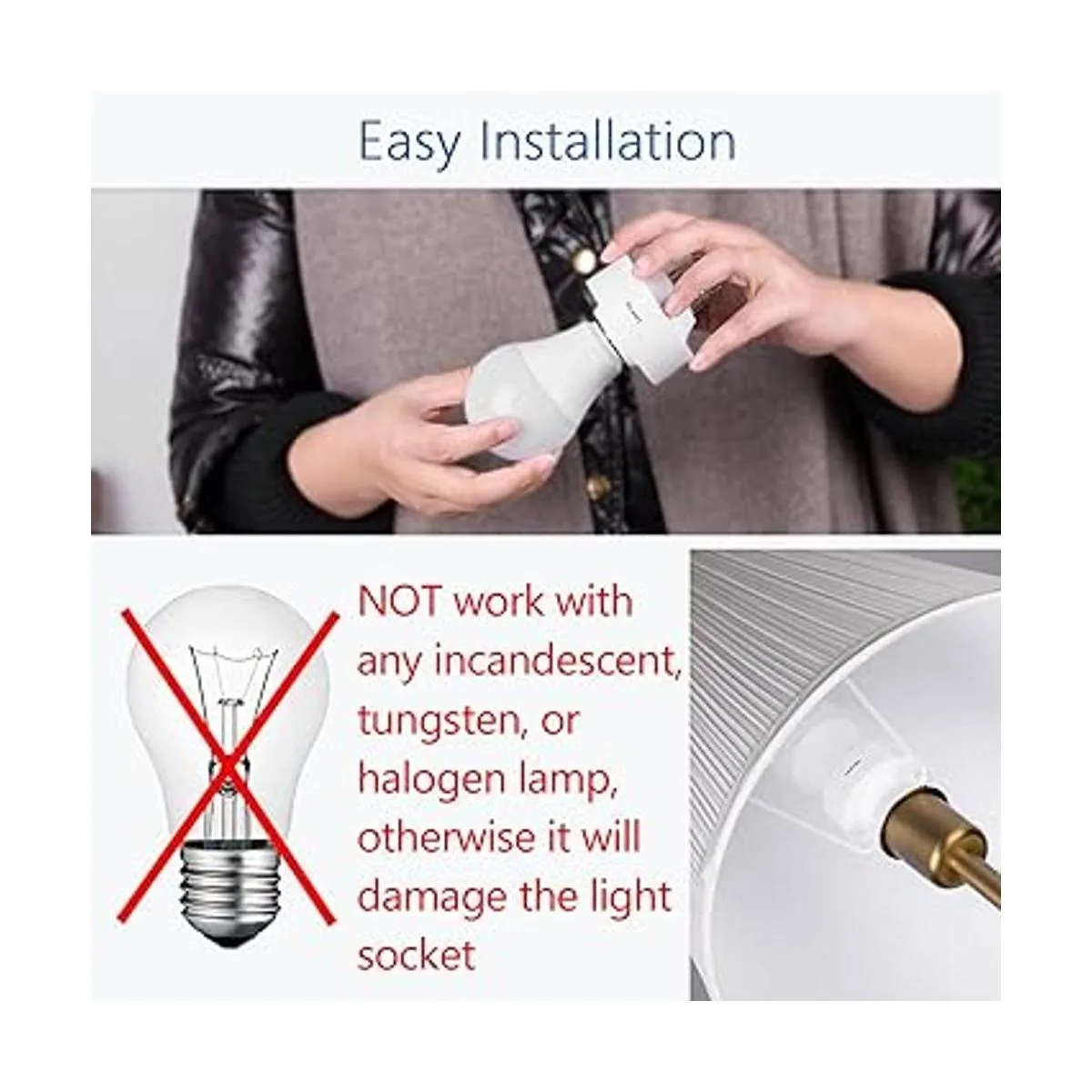 Fácil instalación y sin interferencias: simplemente atornilla el adaptador de bombilla entre el soporte de la lámpara y la bombilla, entonces puedes convertir tu bombilla normal en bombilla inalámbrica. Puedes utilizar varios kits de enchufes de bombilla en una habitación sin interferencias de señal