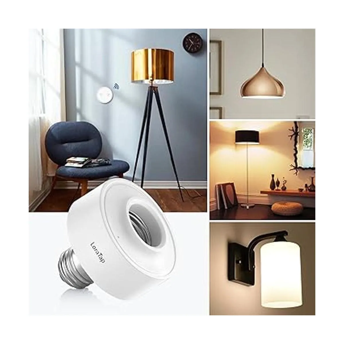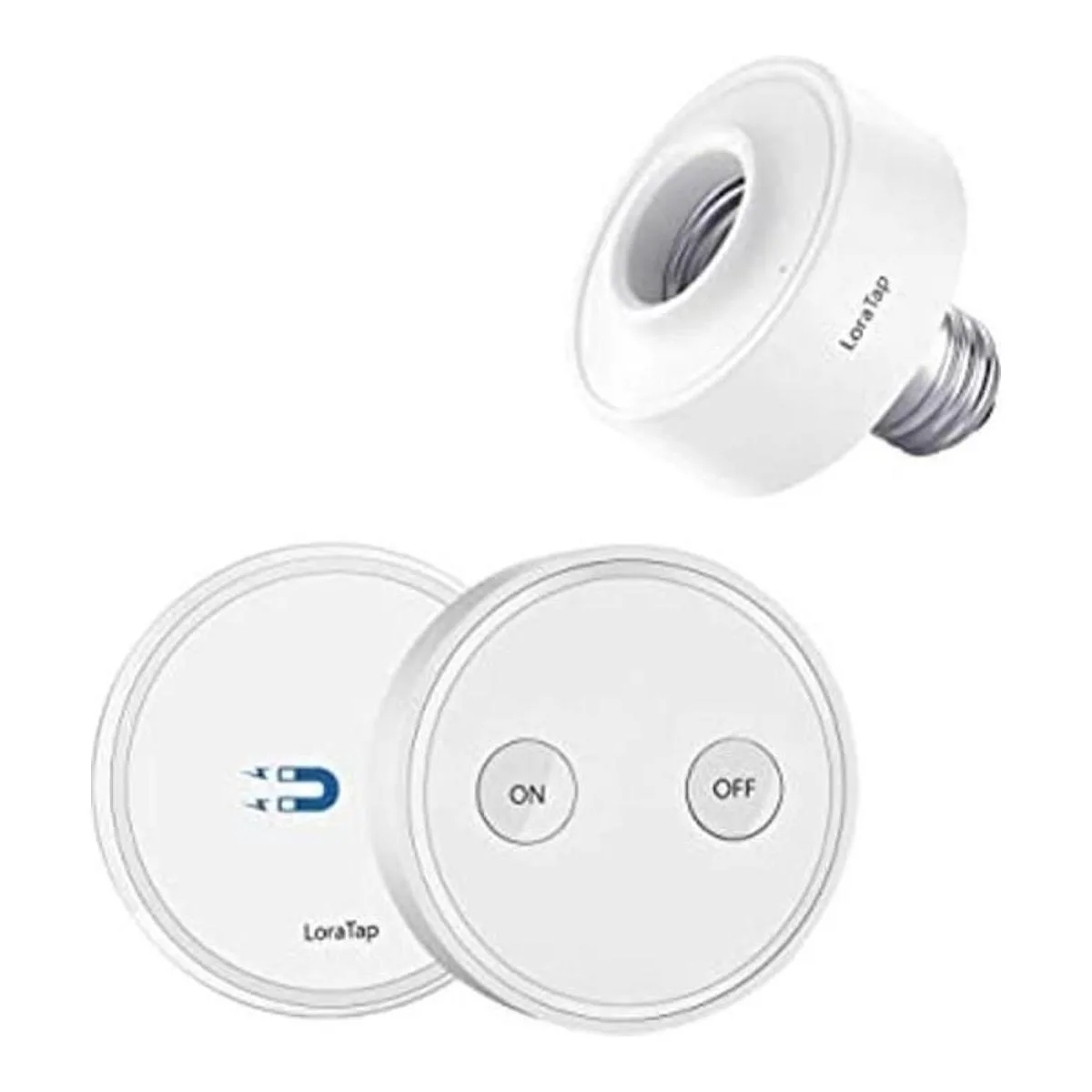 LoraTap Control remoto inalámbrico E26 enchufe de luz con mando a distancia, 915 MHz, rango de 656 pies, control remoto de encendido y apagado para bombillas LED y lámparas de 30 W máximo, blanco interruptor de luz soporte de lámpara LED