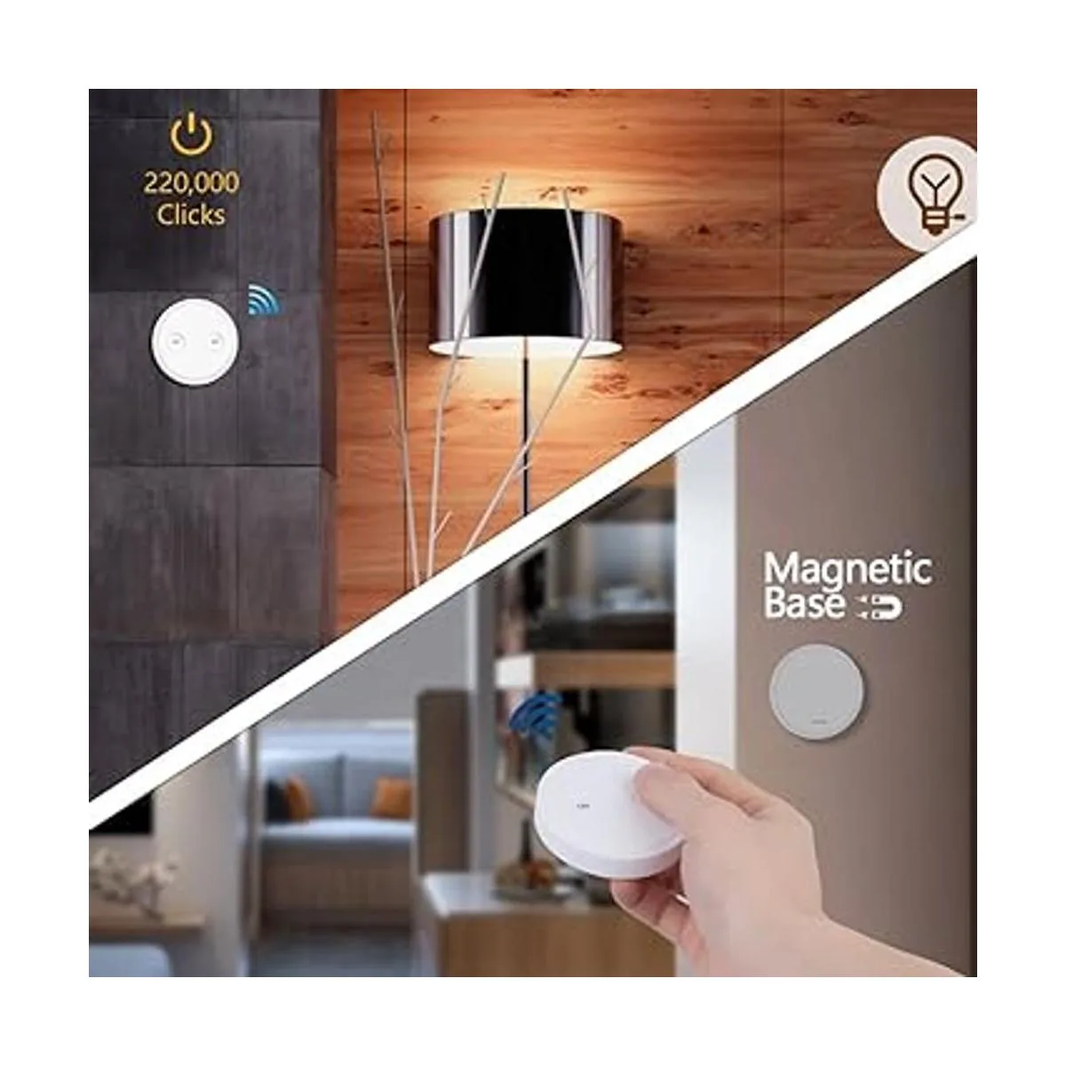 Largo alcance y base magnética: el control de iluminación inalámbrico varía hasta 98.4 ft interior, 656.2 ft exterior, lo que te permite controlar tu luz desde casi cualquier lugar de tu casa; el control remoto cuenta con una base magnética que es montable y movible, por lo que puedes reubicar el interruptor de luz sin dañar tus paredes