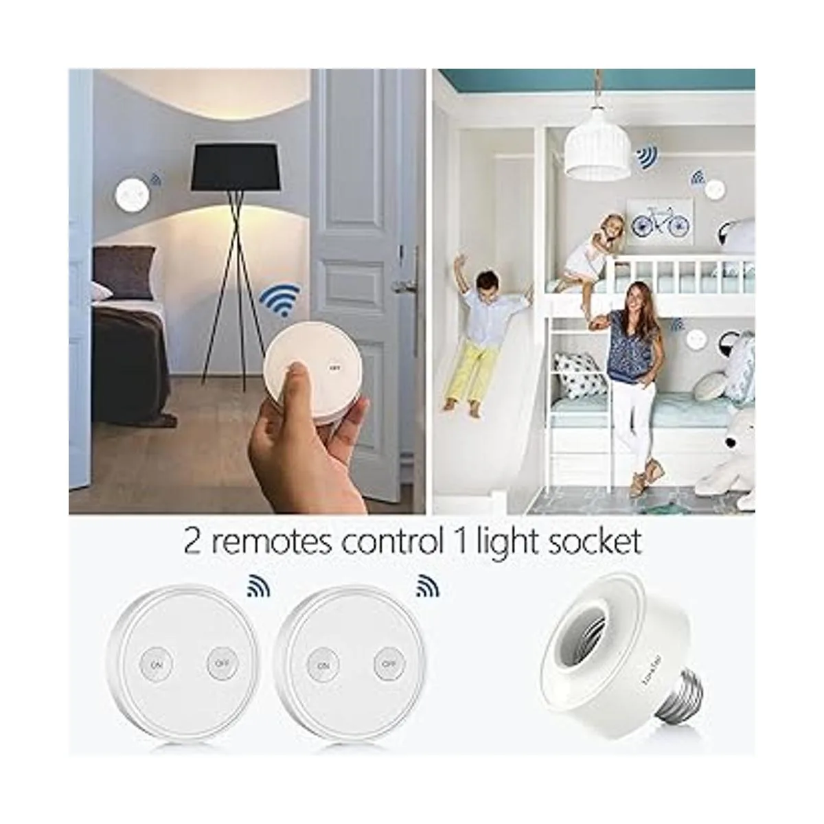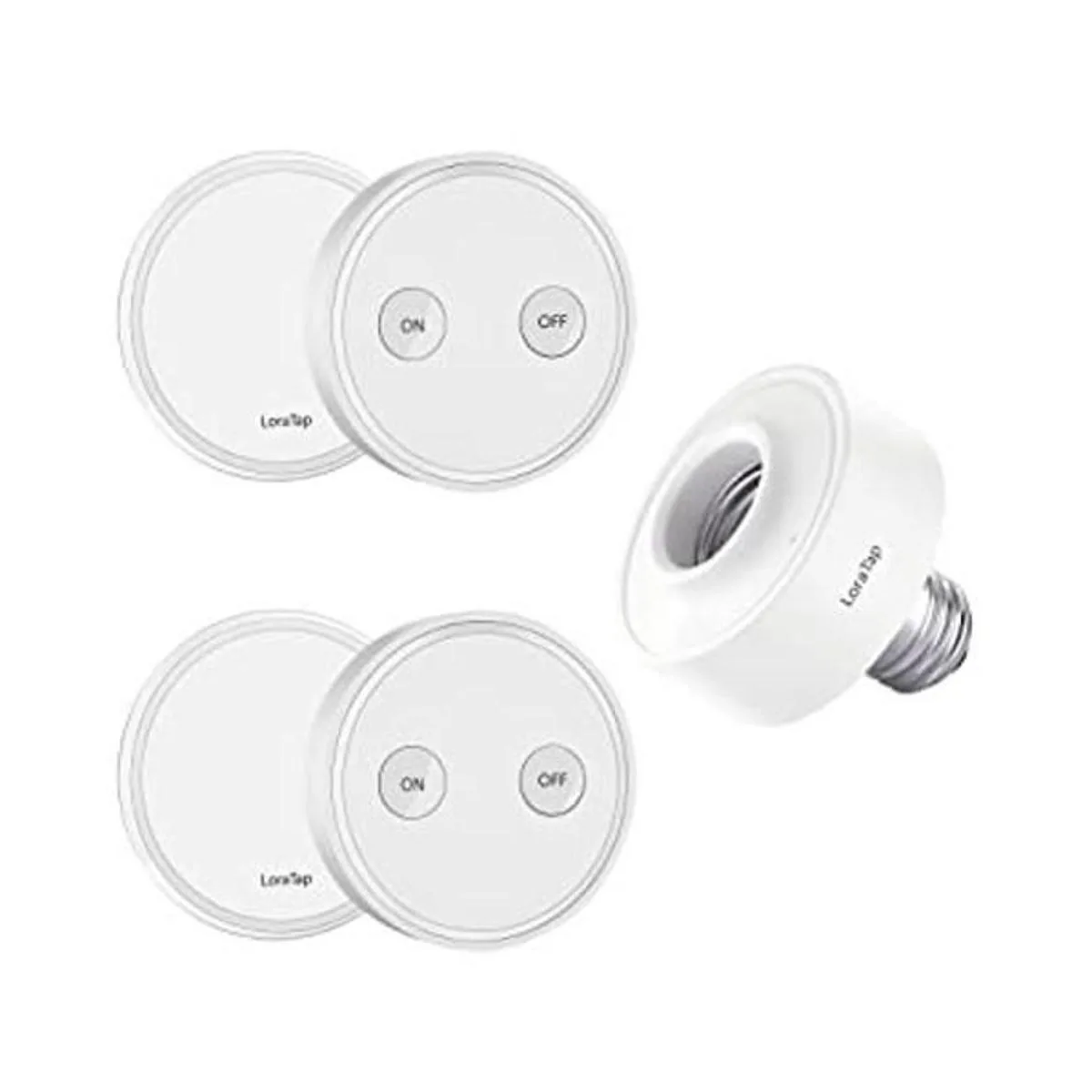 LoraTap Kit de toma de luz E26 con mando a distancia inalámbrico, 656 pies 915 MHz, interruptor de encendido y apagado para bombillas LED y accesorios, 5 años de garantía 2 interruptores de luz 1 soporte de lámpara LED