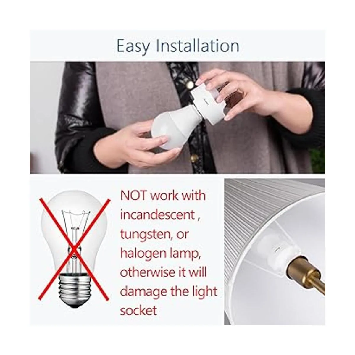 Fácil instalación y sin interferencias: simplemente atornilla el adaptador de bombilla entre el soporte de la lámpara y la bombilla, entonces puedes convertir tu bombilla normal en bombilla inalámbrica. Control sencillo de la luz, fácil para personas mayores, niños y personas con movilidad limitada. Puedes utilizar varios kits de bombillas en una habitación sin interferencias de señal