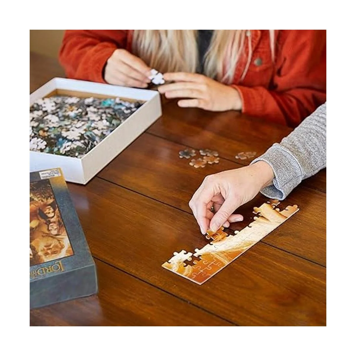 Rompecabezas LOTR: Viaja a la Tierra Media y visita a los pasatiempos, elfos, hombres, enanos, magos y orcos mientras ayudas a salvar el mundo del mal. Son 1000 piezas de diversión mágica