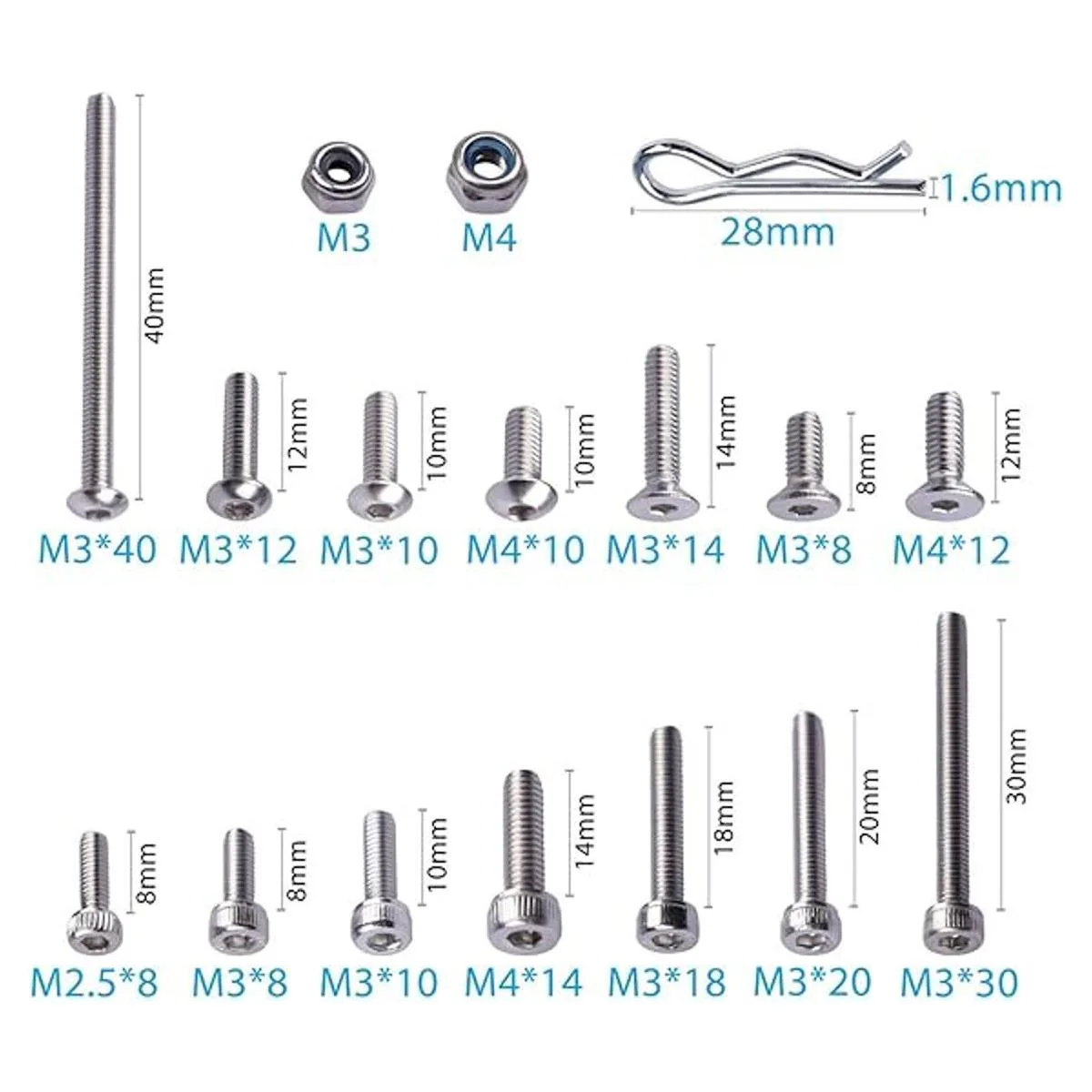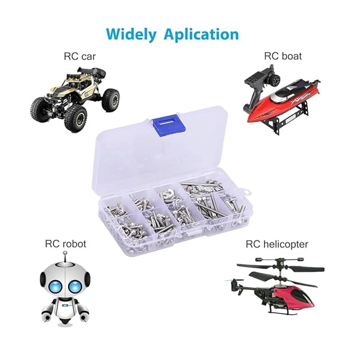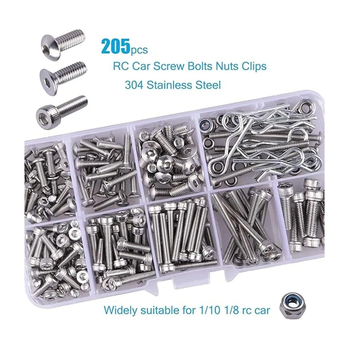 Caja de almacenamiento: total de 205 piezas, incluye diferentes tamaños de tornillos, tuercas y clips de cuerpo RC organizados en una resistente y práctica caja de almacenamiento