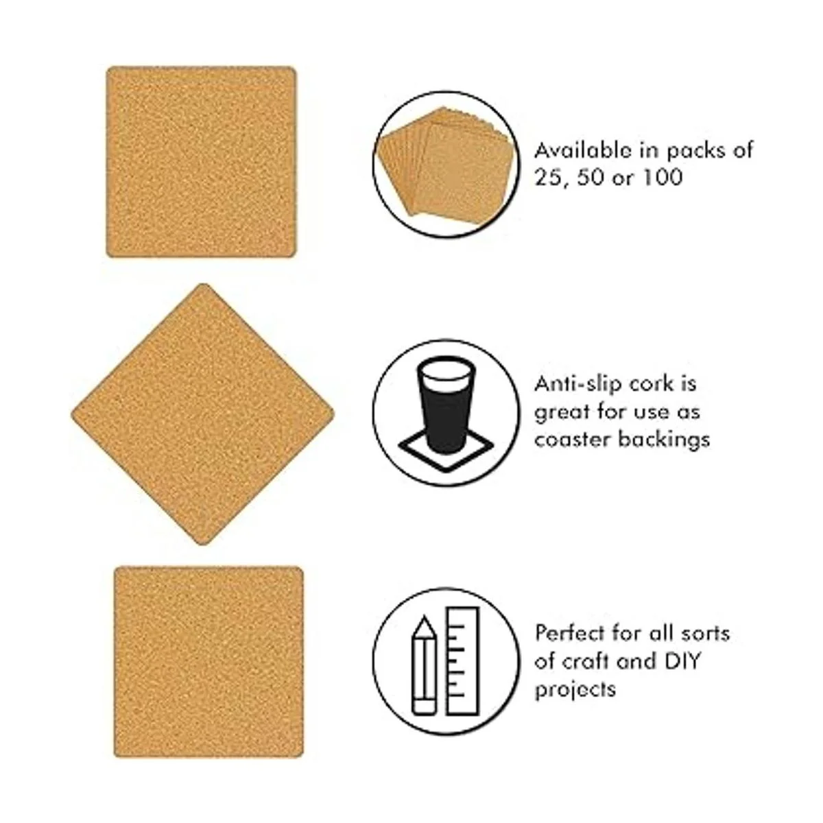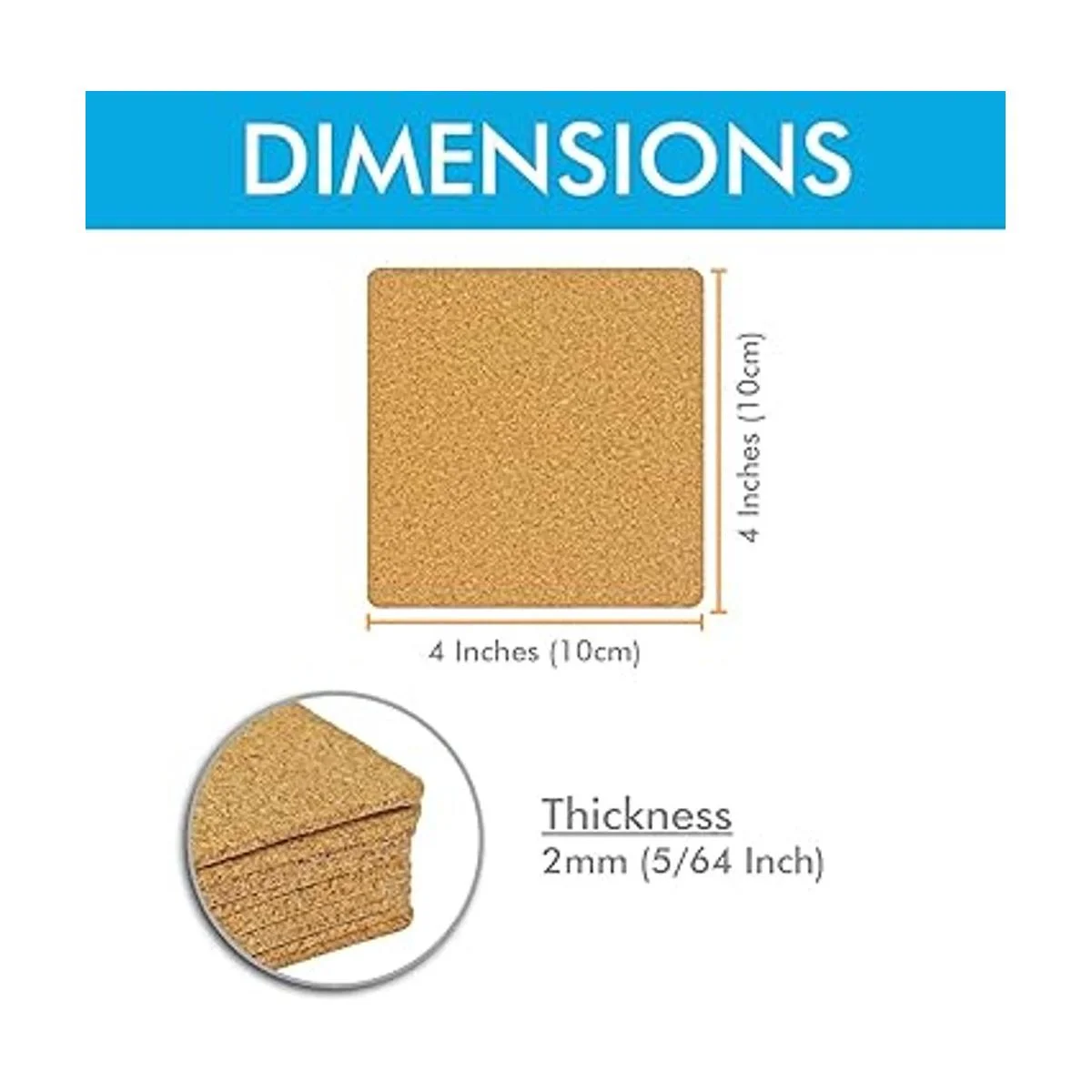 Dimensiones: los posavasos de corcho miden 3.937 x 3.937 in y 0.079 in de grosor. Cada juego viene con 25 azulejos de corcho con esquinas redondeadas.