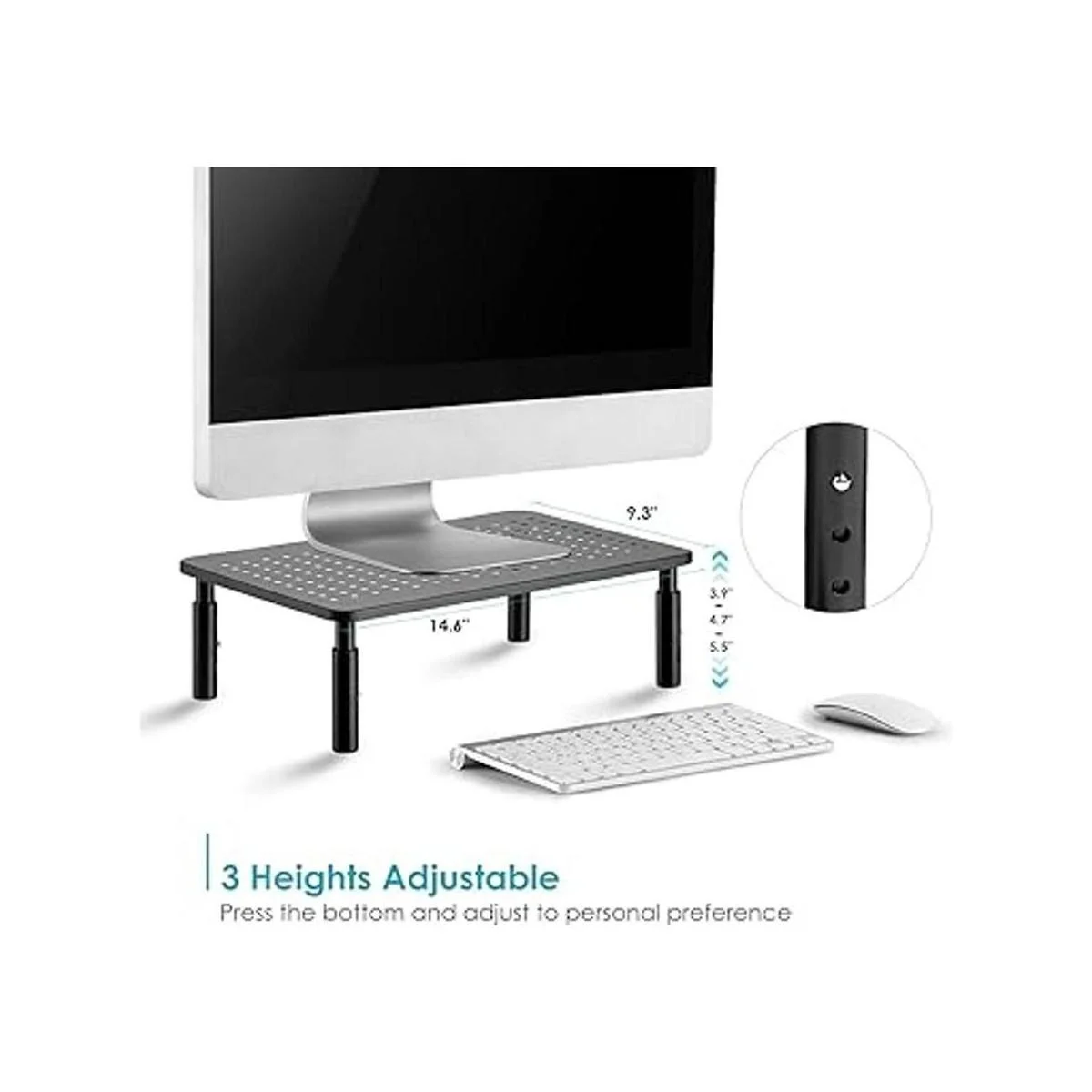 Elevador de monitor de diseño ergonómico con 3 ajustes de altura: este soporte ligero para monitor de computadora viene con 3 niveles de altura ajustables que te permiten elegir el ángulo de visión más ergonómico, saludable y cómodo mientras trabajas. Simplemente pulsa el botón en la pierna del soporte de PC y levanta la plataforma para ajustar entre los diferentes niveles de altura de 3.9/4.7/5.5 pulgadas para crear una posición de visualización cómoda y una posición de sentado más saludable que ayuda a reducir el estrés en el cuello y la espalda.