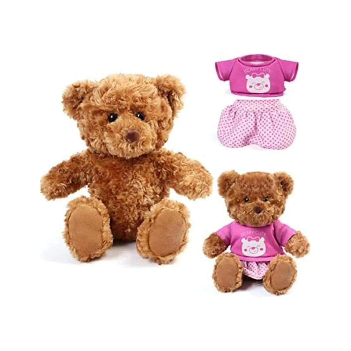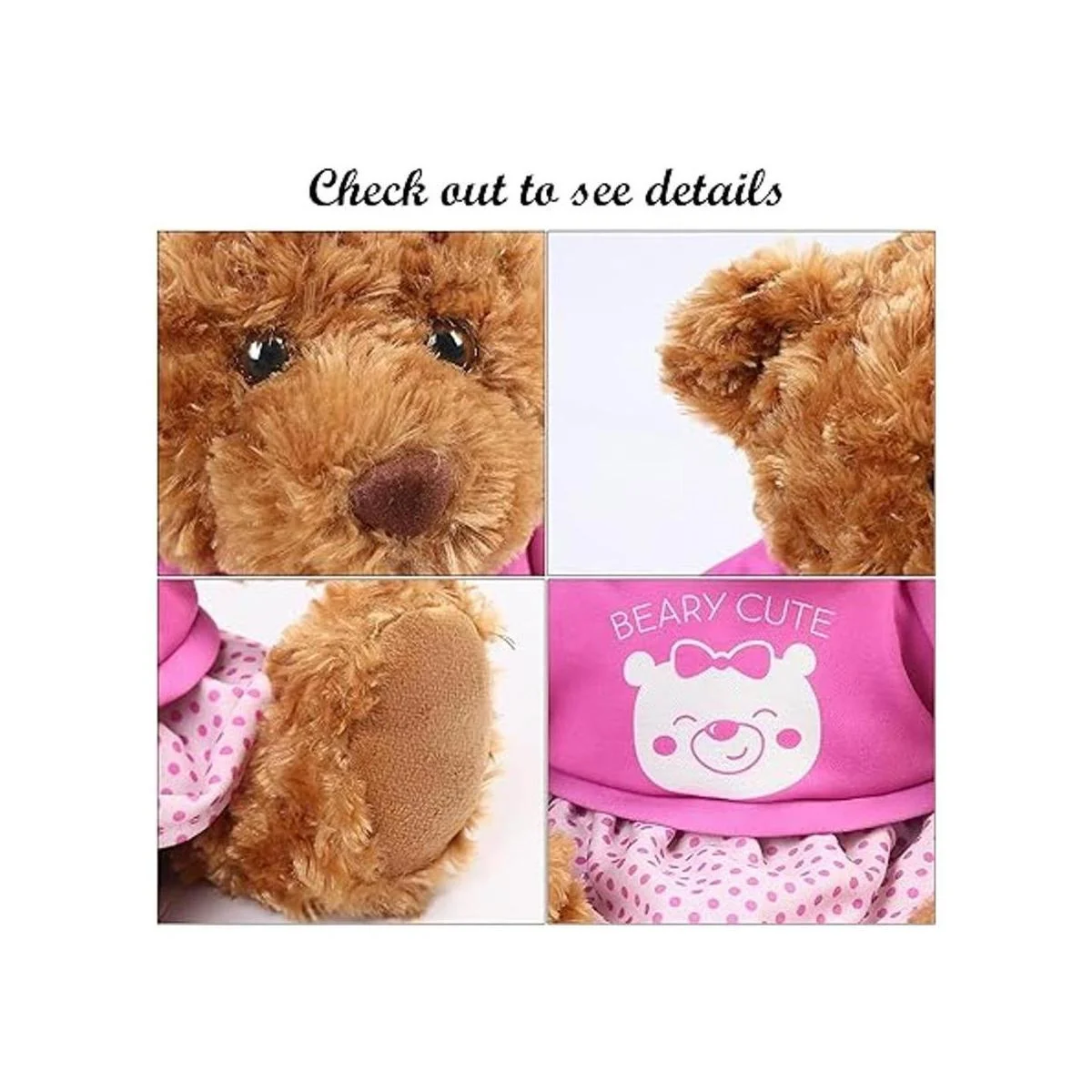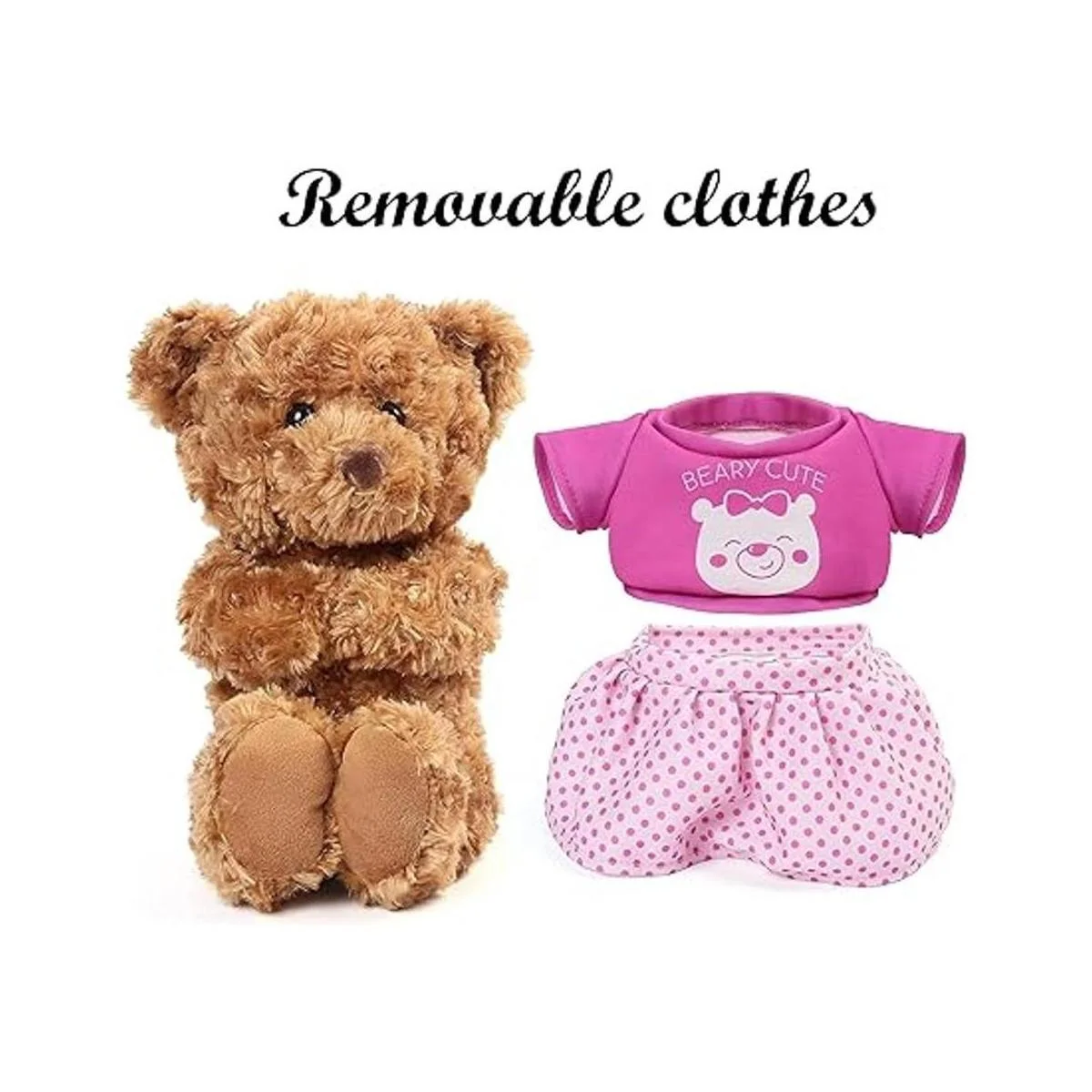 Ropa extraíble proporcionada: este oso de peluche para niña viene con ropa extraíble, camiseta y vestido rosa, los niños pueden cambiarse de ropa, abrir una nueva experiencia