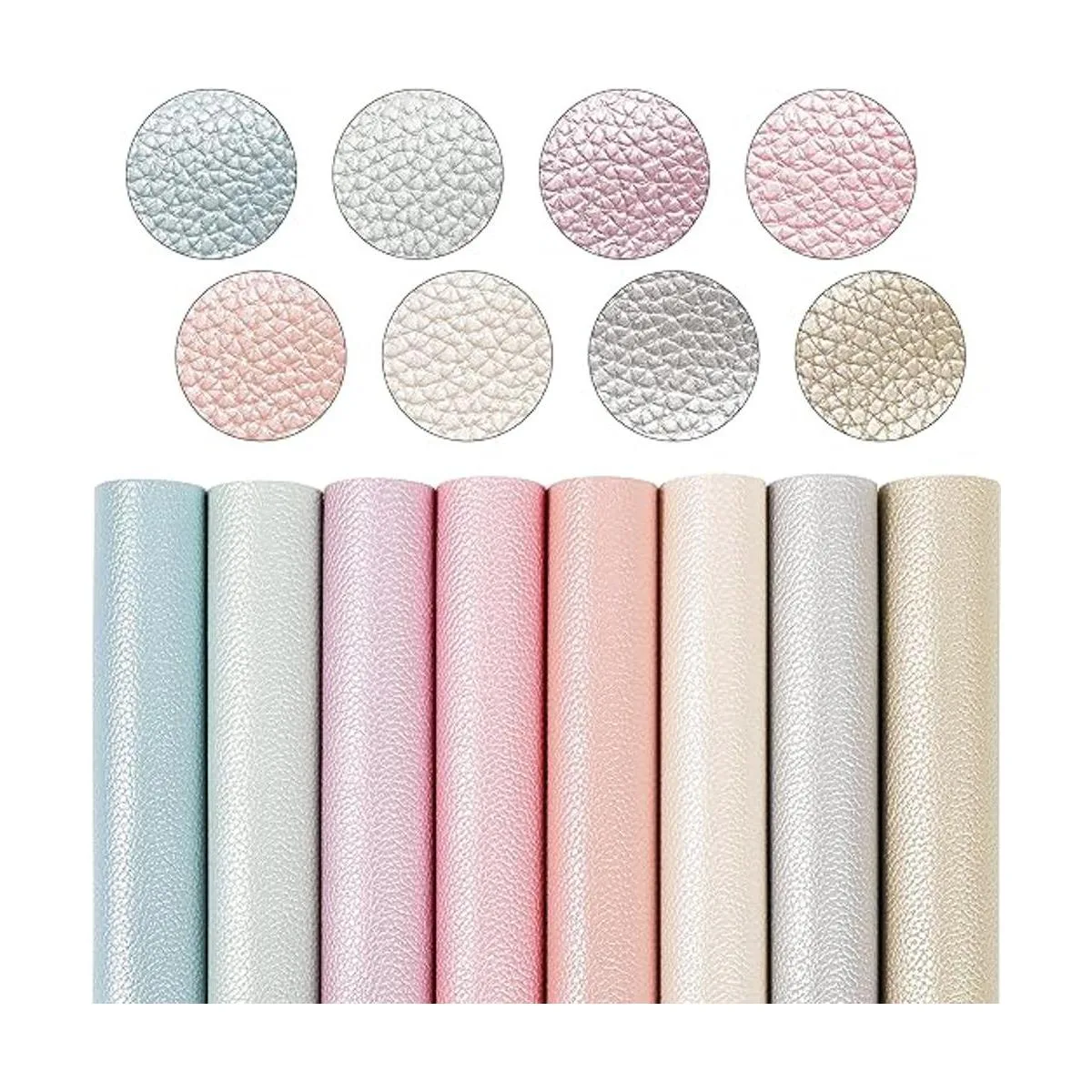 LOTOFUN Hojas de piel sintética de perlas brillantes tela de piel sintética metálica con textura brillante de perlas suaves, 8 piezasjuego de 12 x 8 pulgadas para hacer aretes de lazo, manualidades color claro