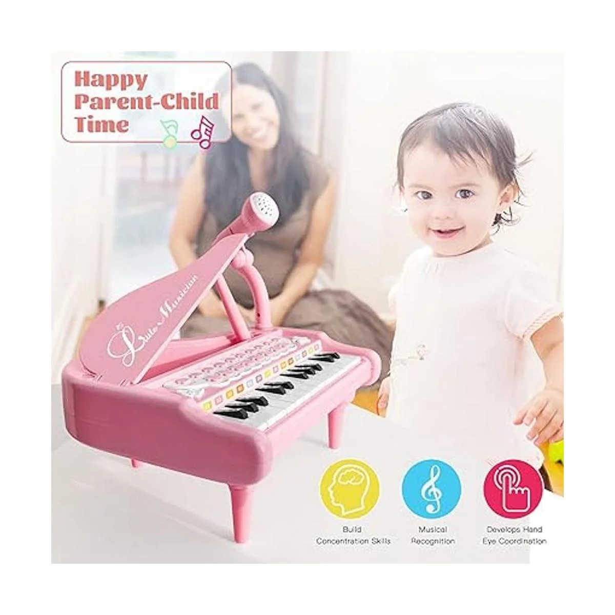 Piano de juguete para regalo de cumpleaños de niñas Perfecto para niños pequeños, tiempo familiar y fiestas. Diseño de 24 teclas Con micrófono y diferentes funciones con control de volumen, que te permiten a ti y a tu bebé sumergirse en tu mundo musical