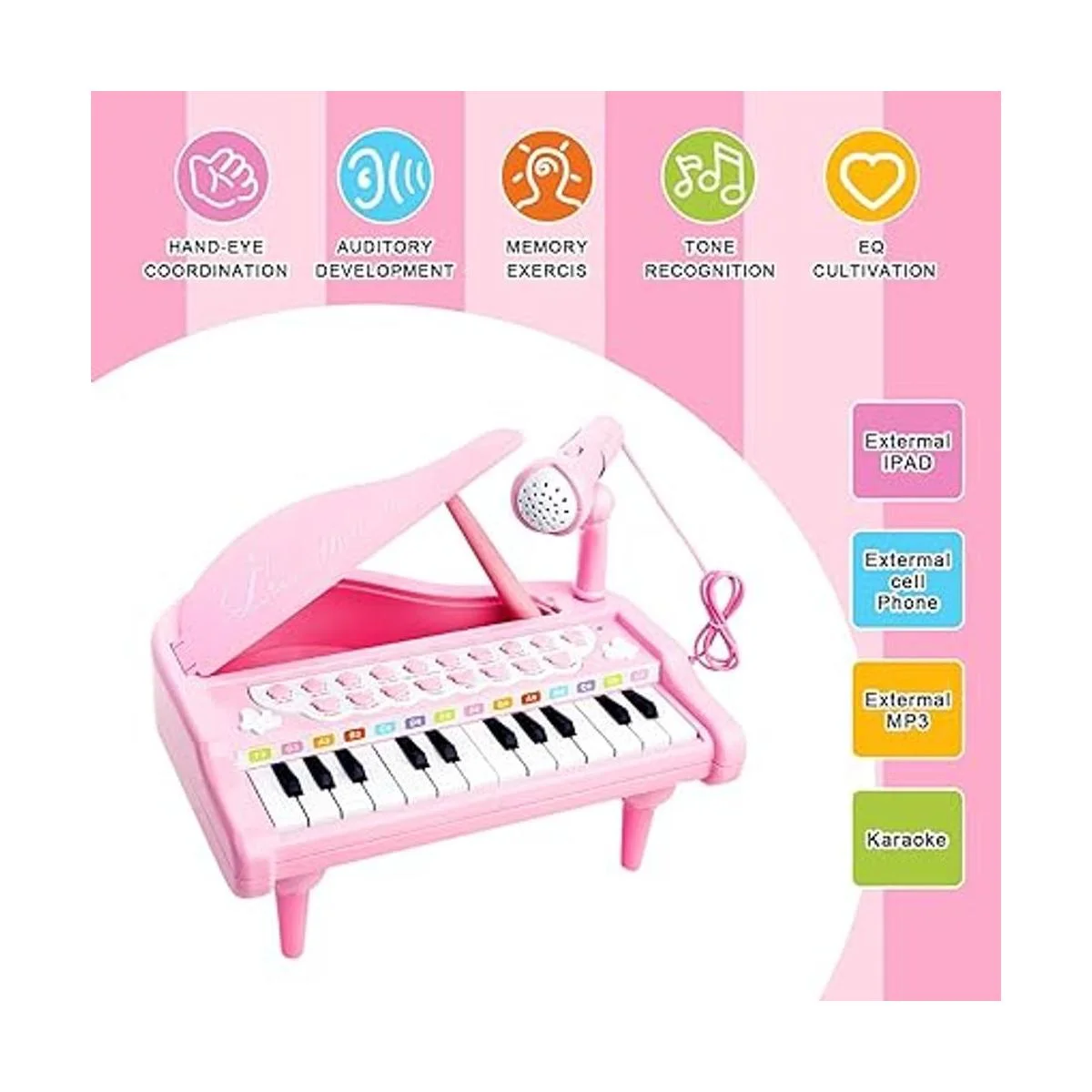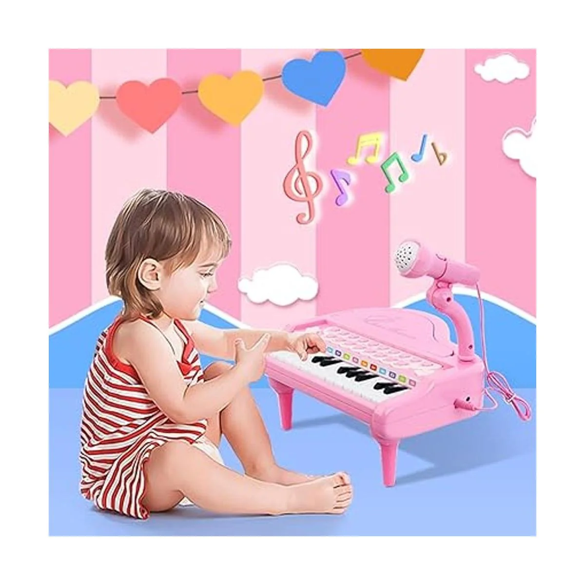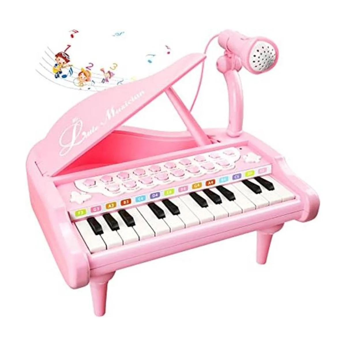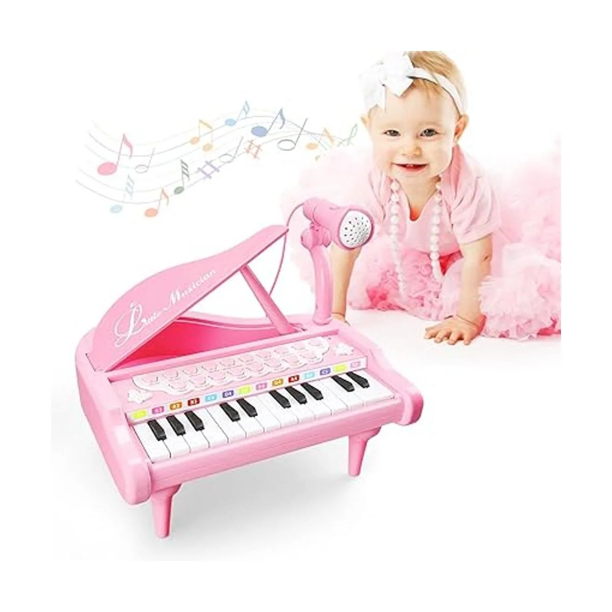 LoveMini Juguetes de piano rosa para niñas de 1 año, regalos de primer cumpleaños, instrumentos de música de piano con 24 teclas y micrófono