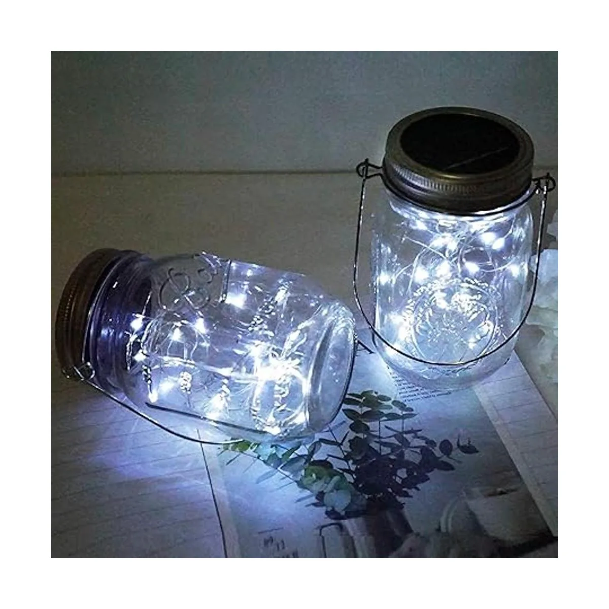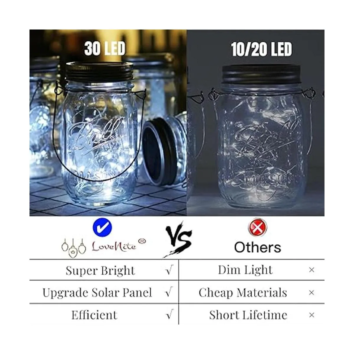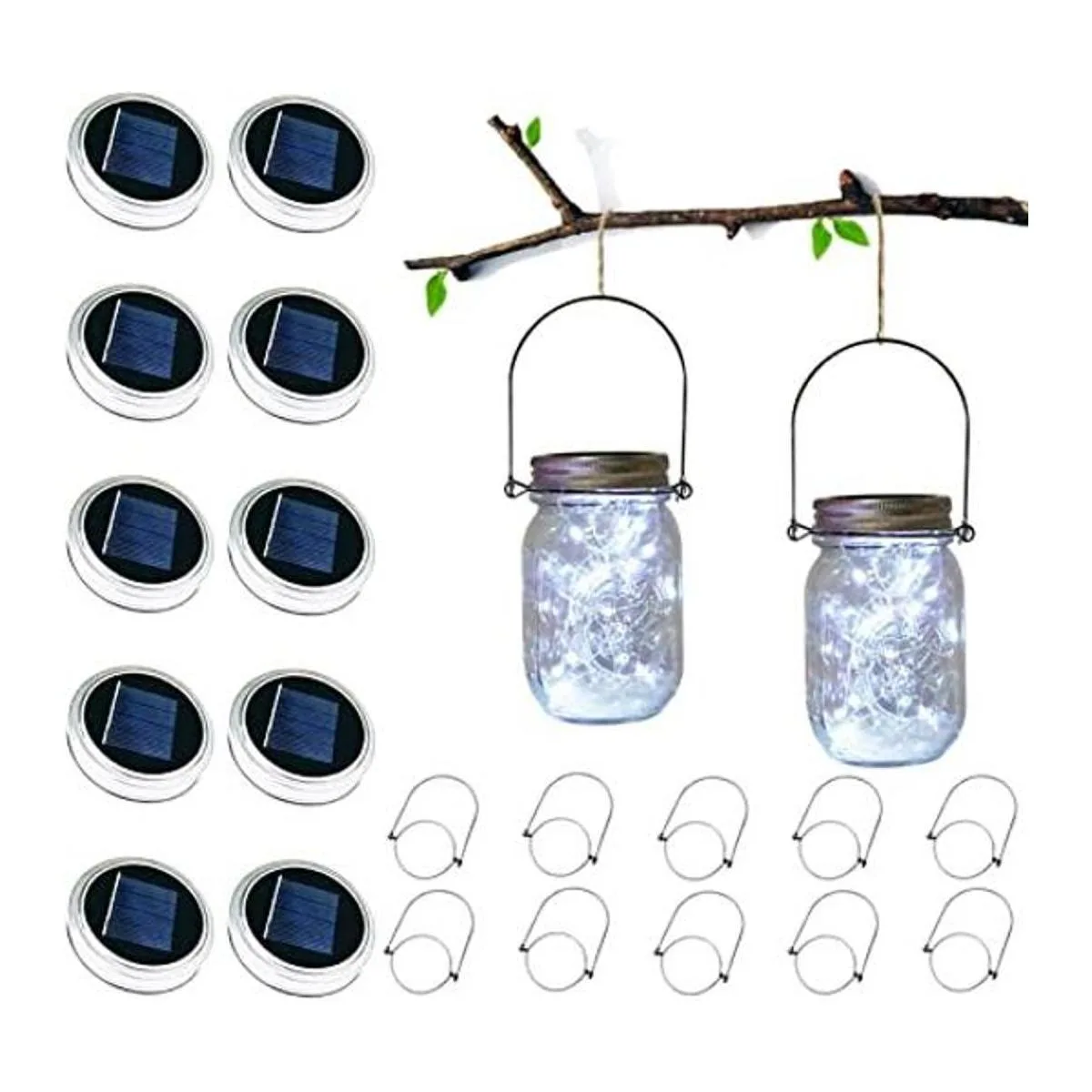 LoveNite Lote de 10 luces solares para colgar en tarros de cristal con 30 luces LED para decoración de patios, jardines, bodas, luces solares blanco frío