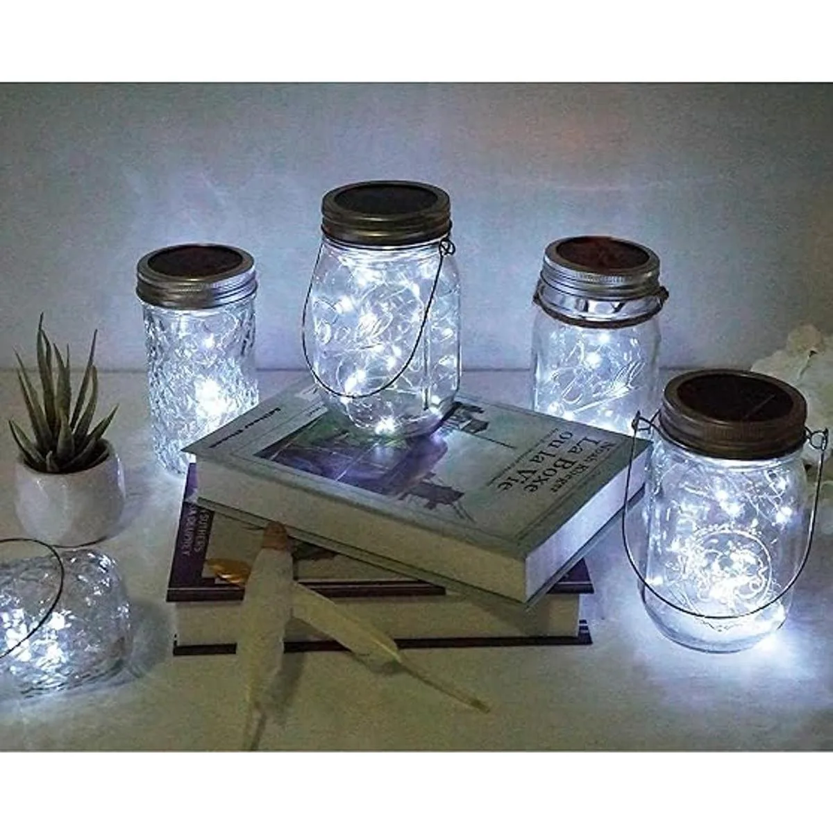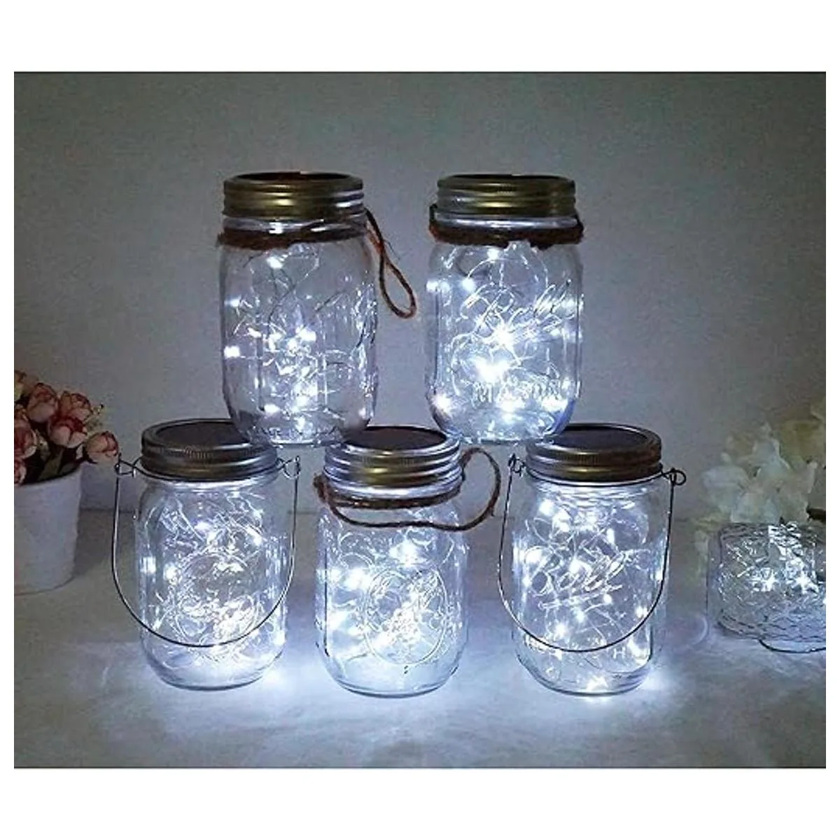 Luces solares de cadena de tarro de masón : las luces de tarro son alimentadas por panel solar, simplemente coloque las luces bajo la luz solar, protección del medio ambiente y ahorro de energía. Si hay mucho tiempo sin sol, también puede funcionar con pilas AAA.