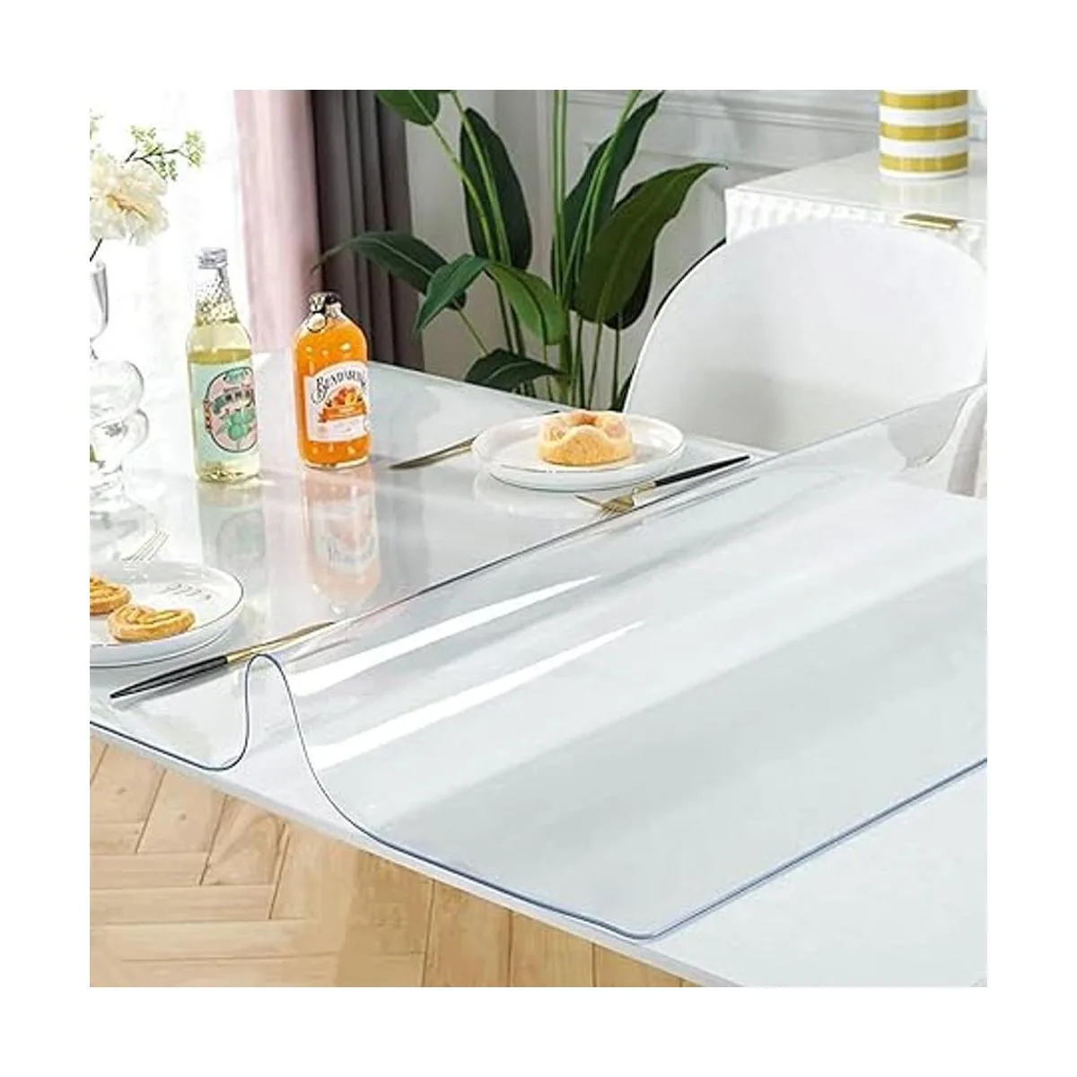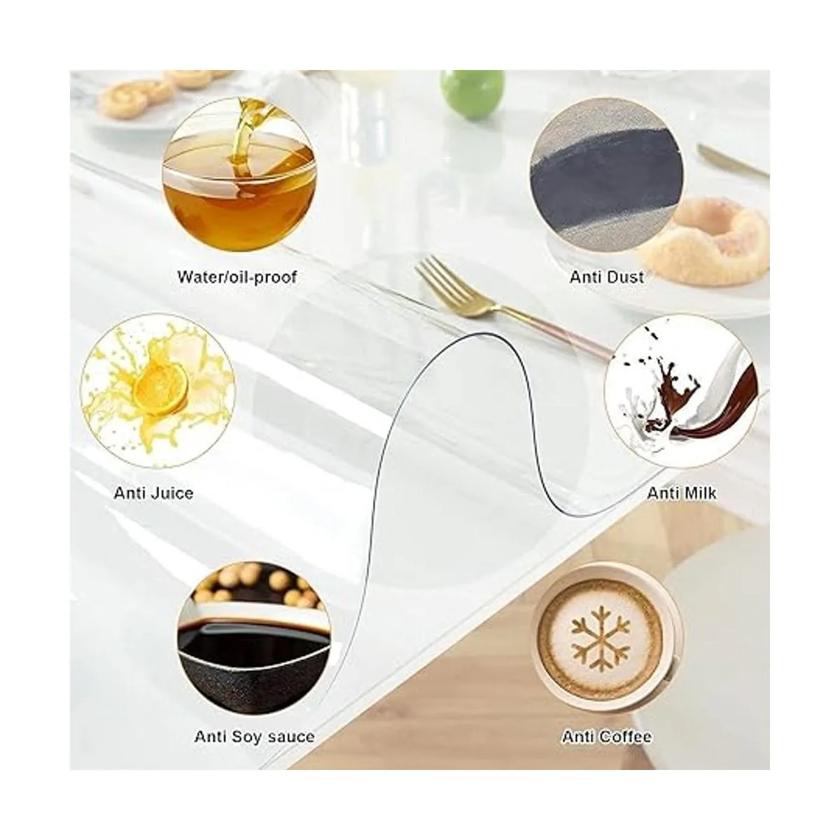 Fácil de limpiar: Nuestro protector de mesa transparente es impermeable y muy fácil de limpiar. Simplemente, limpia esta funda plástica con un paño húmedo y eliminarás así toda la suciedad de su superficie, y ya estará listo para que puedas servir la comida. Esta cubierta de plástico se puede utilizar no solo como mantel rectangular, sino también como un protector transparente para el escritorio.